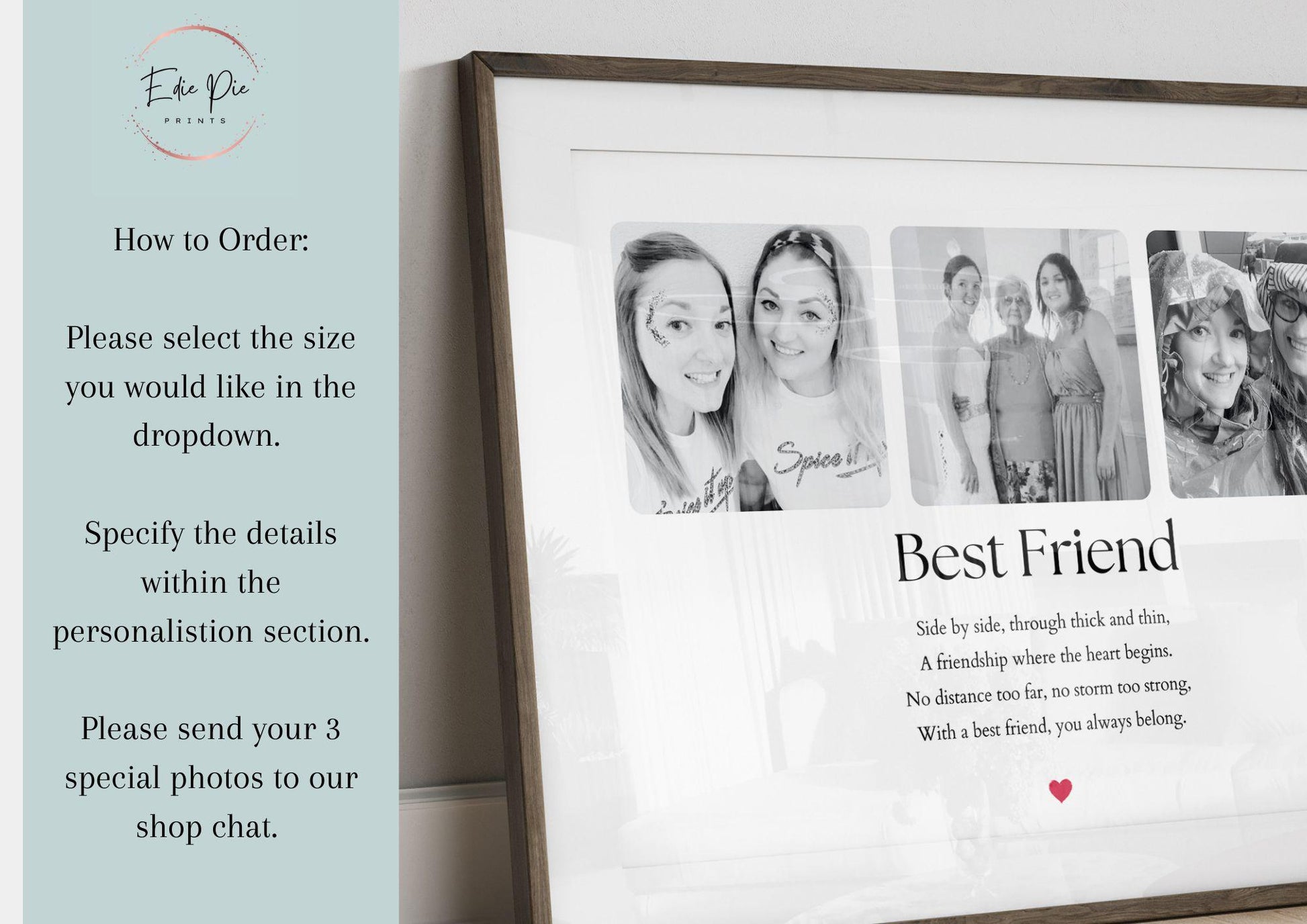 Best Friend Photo Collage, Personalised Friendship Gift, Custom Picture Frame, Long Distance Friend Gift, Sentimental Friend Gift for Her