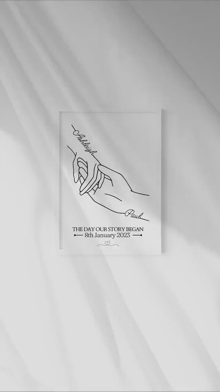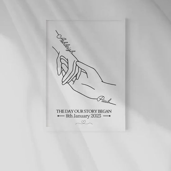 Custom Anniversary Print, Hands Minimalist Line Art, Valentines Day, Wedding Gift, Personalised Gift for Wife, Gift for Girlfriend Boyfriend