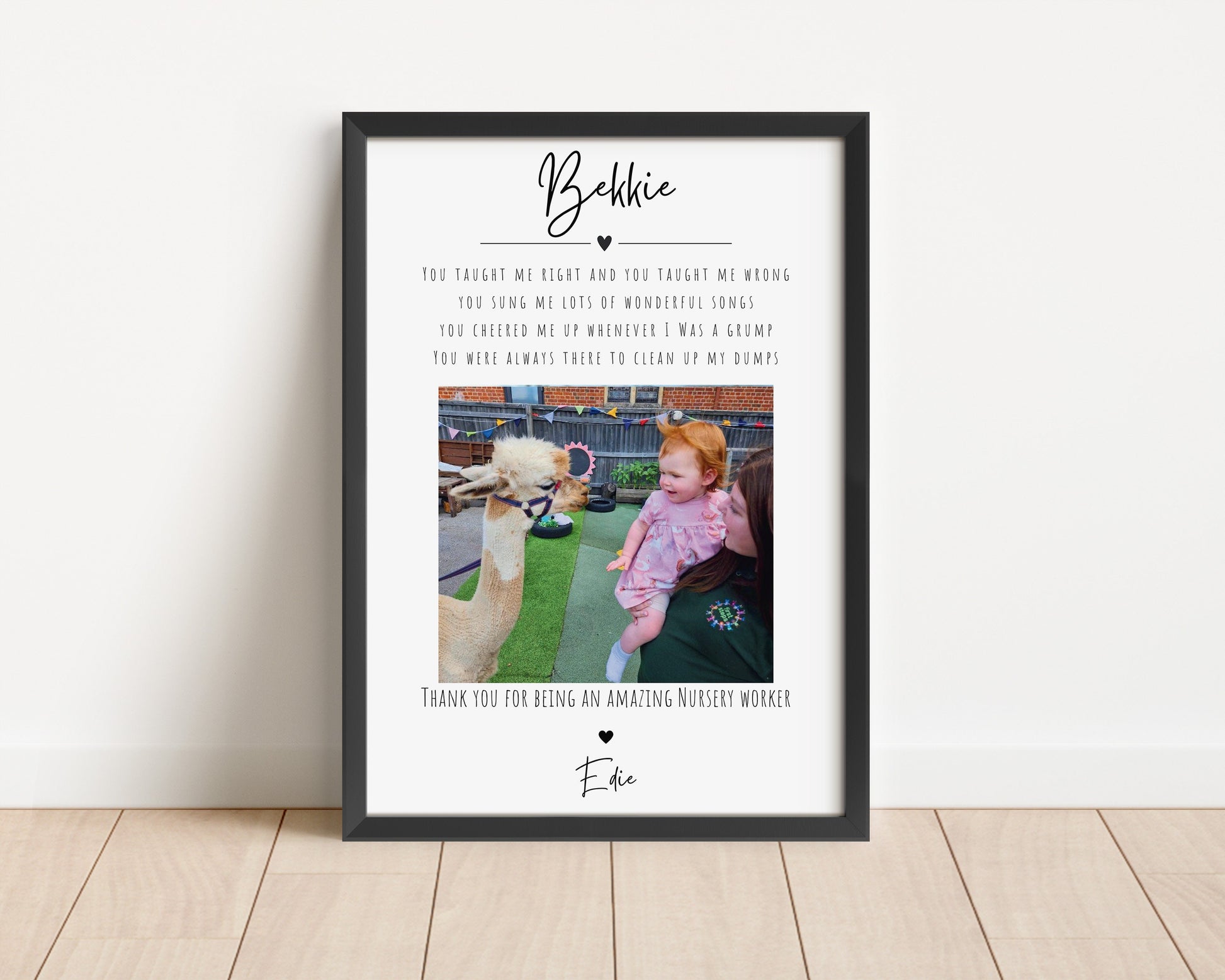 Custom Nursery Thank You Gift, Key Worker Gift, Nursery Teacher Poster, Year End Teacher Gift, Personalised Gift Print, Photo Nursery Frame