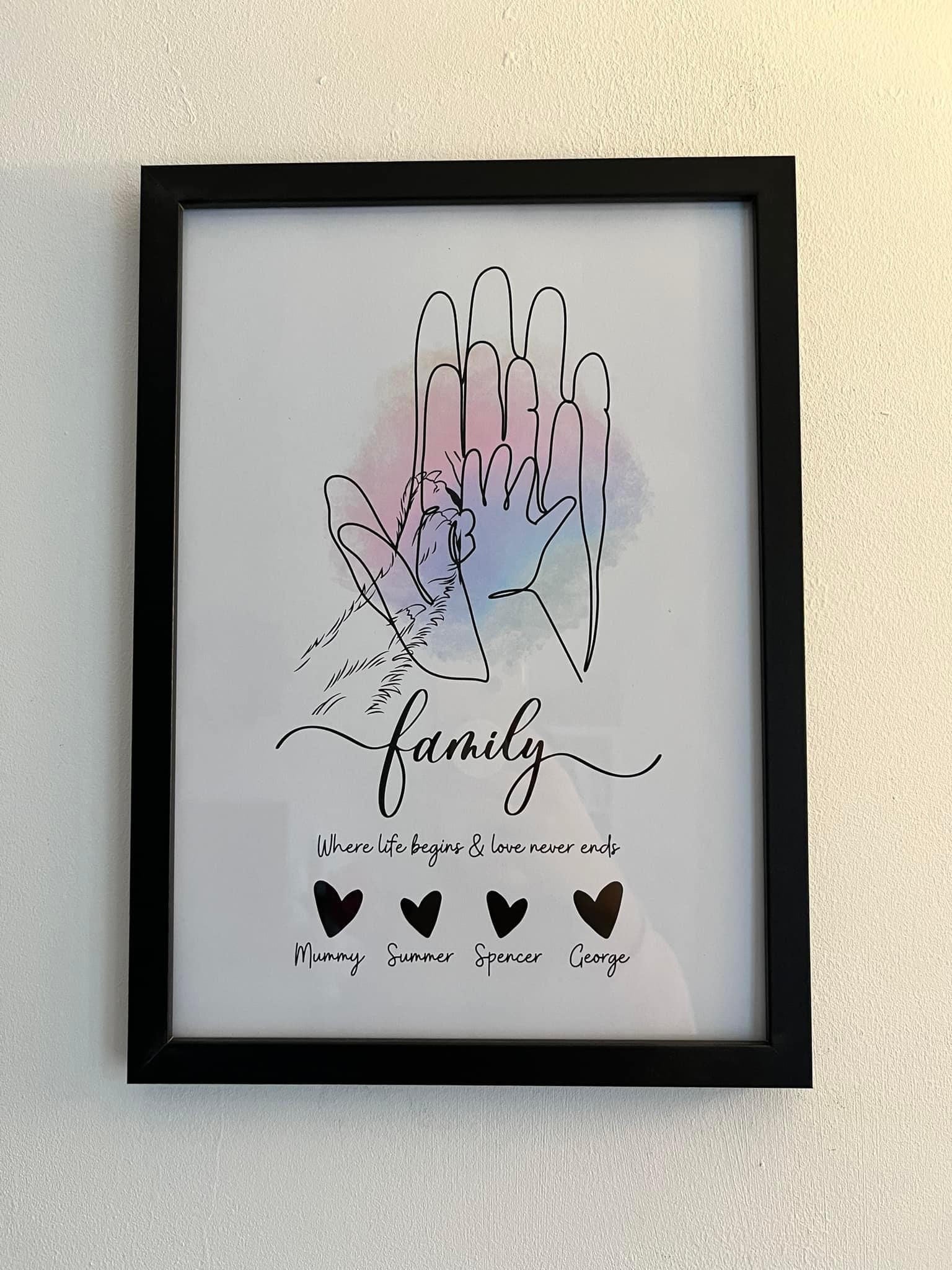 Please enter your requirements within the personalisation section in as detail as possible including hands/ paws required, names of children and pet.