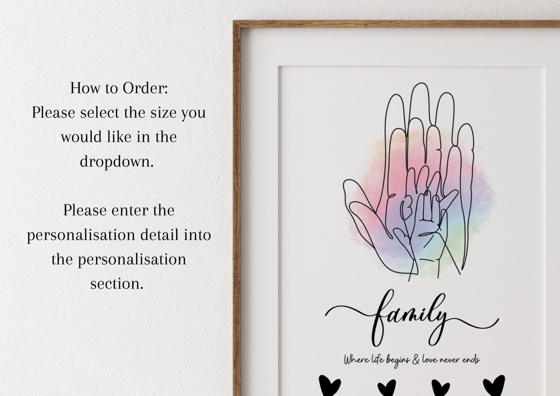 This Family Custom Made Hand Line Art Print is a beautiful addition to your home.