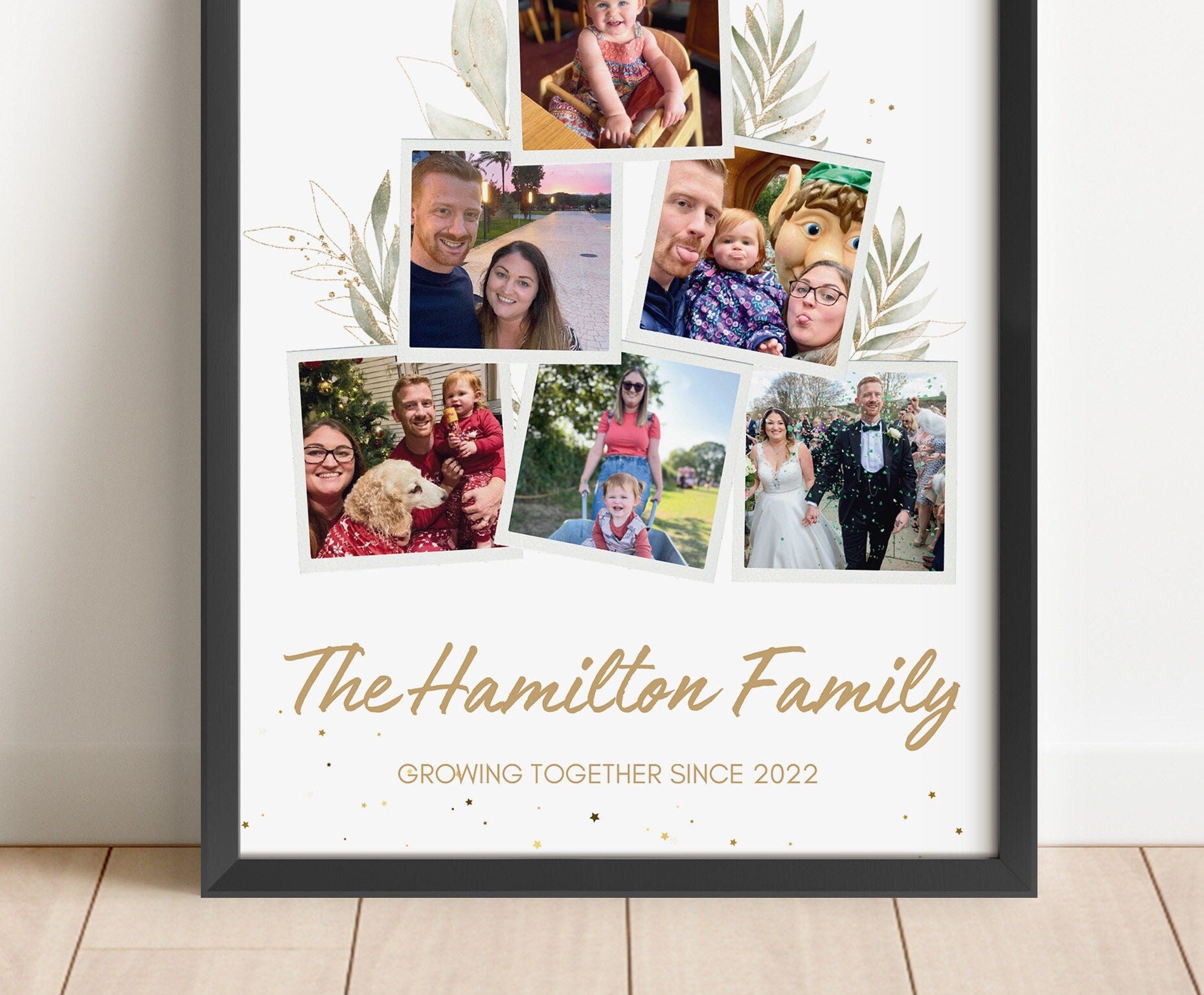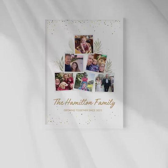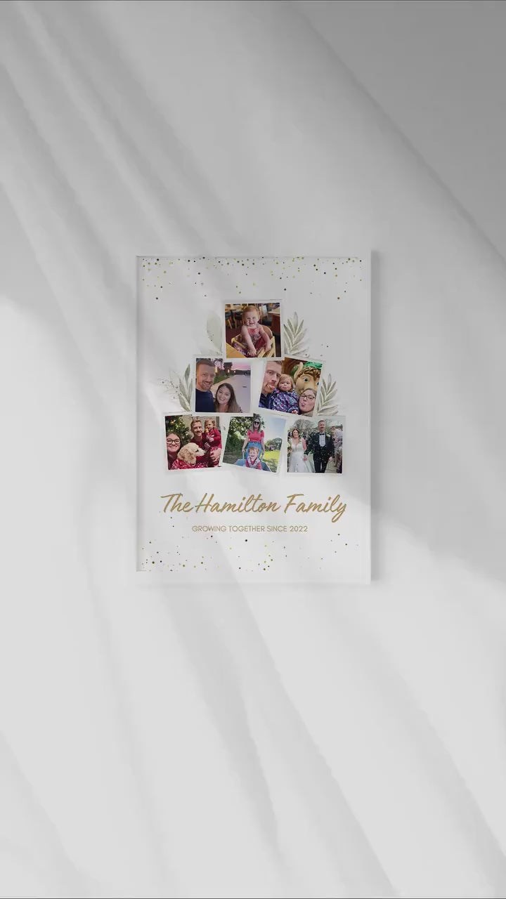 Treat your loved ones with this sentimental and beautiful customised photo print. Fully personalised to order with 6 photos that capture the amazing beauty of a growing family. Capturing 6 photos of your choice in a lovely botanical style. Using natural colours in the back scene to truly create a calm but gorgeous print.