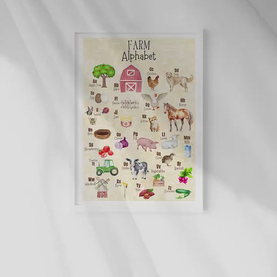 This beautifully coloured Farm Alphabet Print is the perfect decor for your little one's Farm Yard themed nursery or bedroom. A beautiful rustic style print for any animal style bedroom. This print can come as part of a set also. Just check out our shop page to see more.