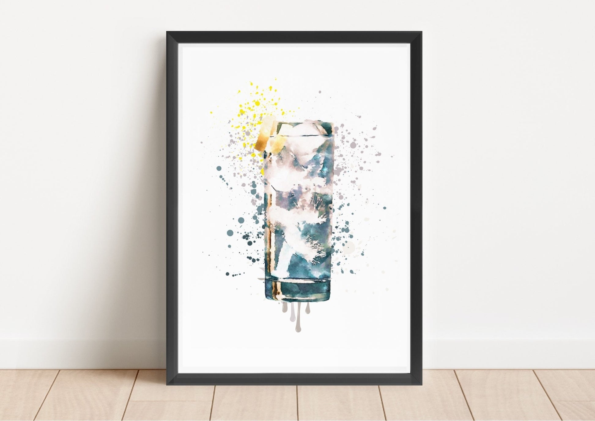 Gin and Tonic Watercolor Print: Modern Bar Cart Wall Art