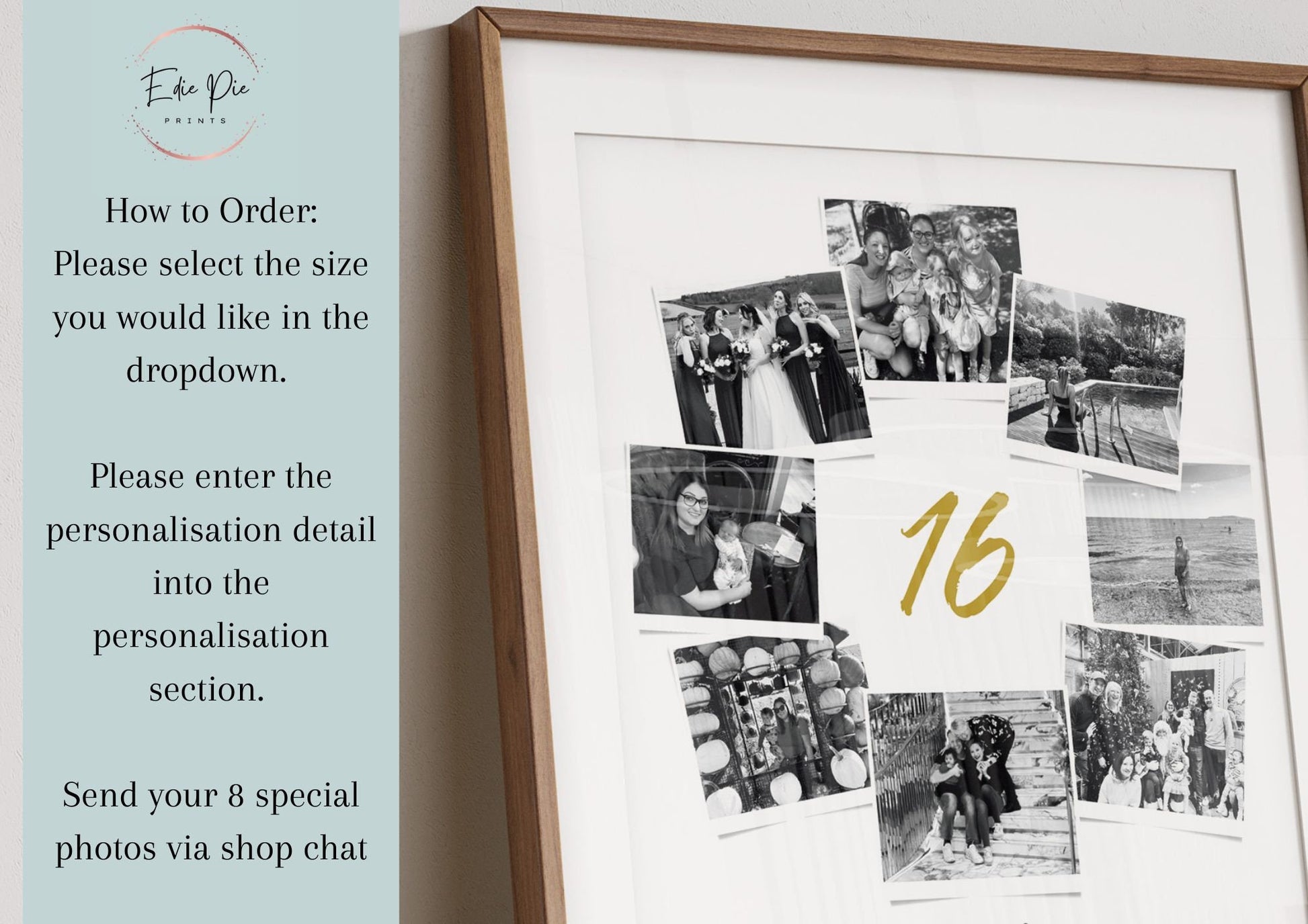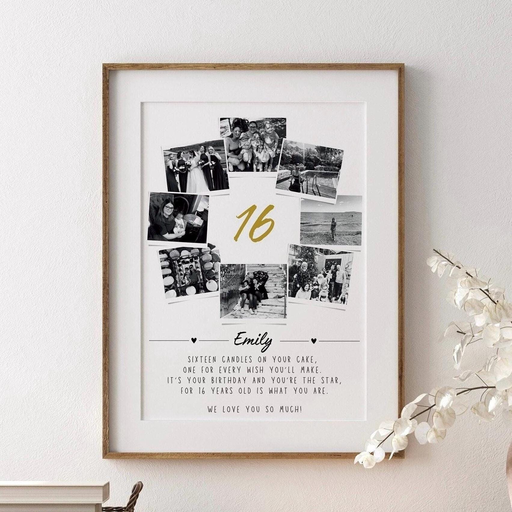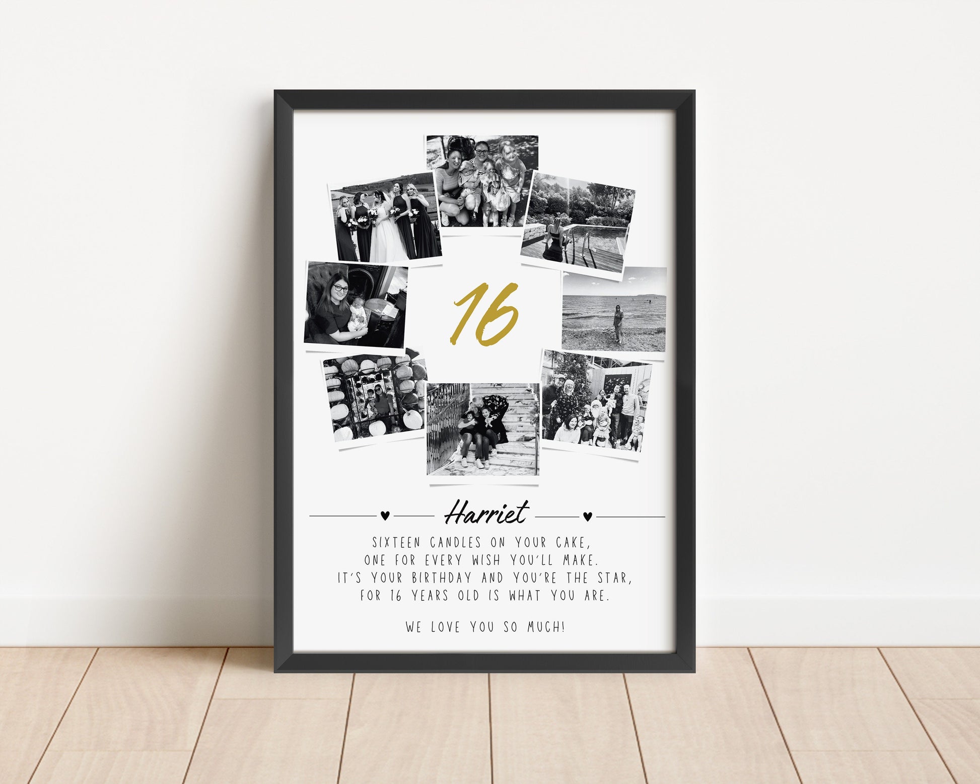 Personalised 16th Birthday Photo Collage, 16th Birthday Gift, 16th Birthday Wall Art, Polaroid Photo Decor, Sweet Sixteen Gift for Daughter