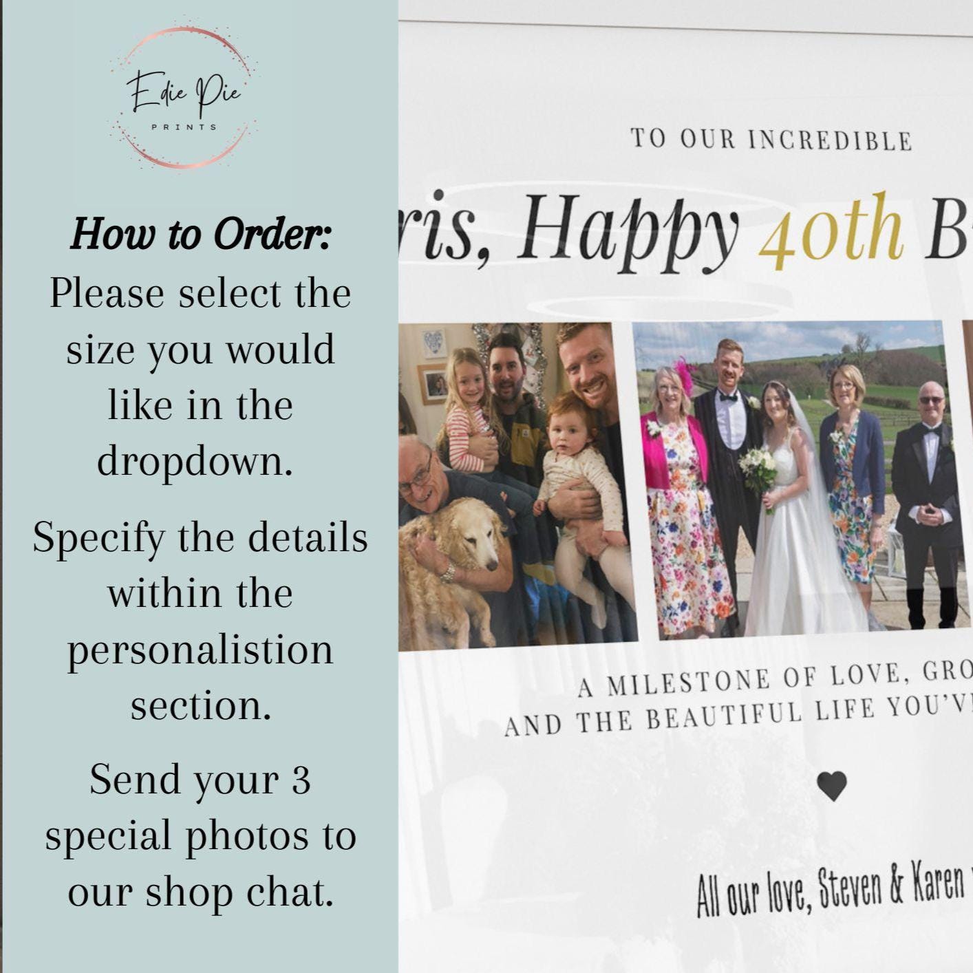 Personalised 40th Birthday Photo Gift, 40th Celebration Frame, 40th Milestone Photo Poster, Polaroid Style, Unique 40 Gift Daughter Son