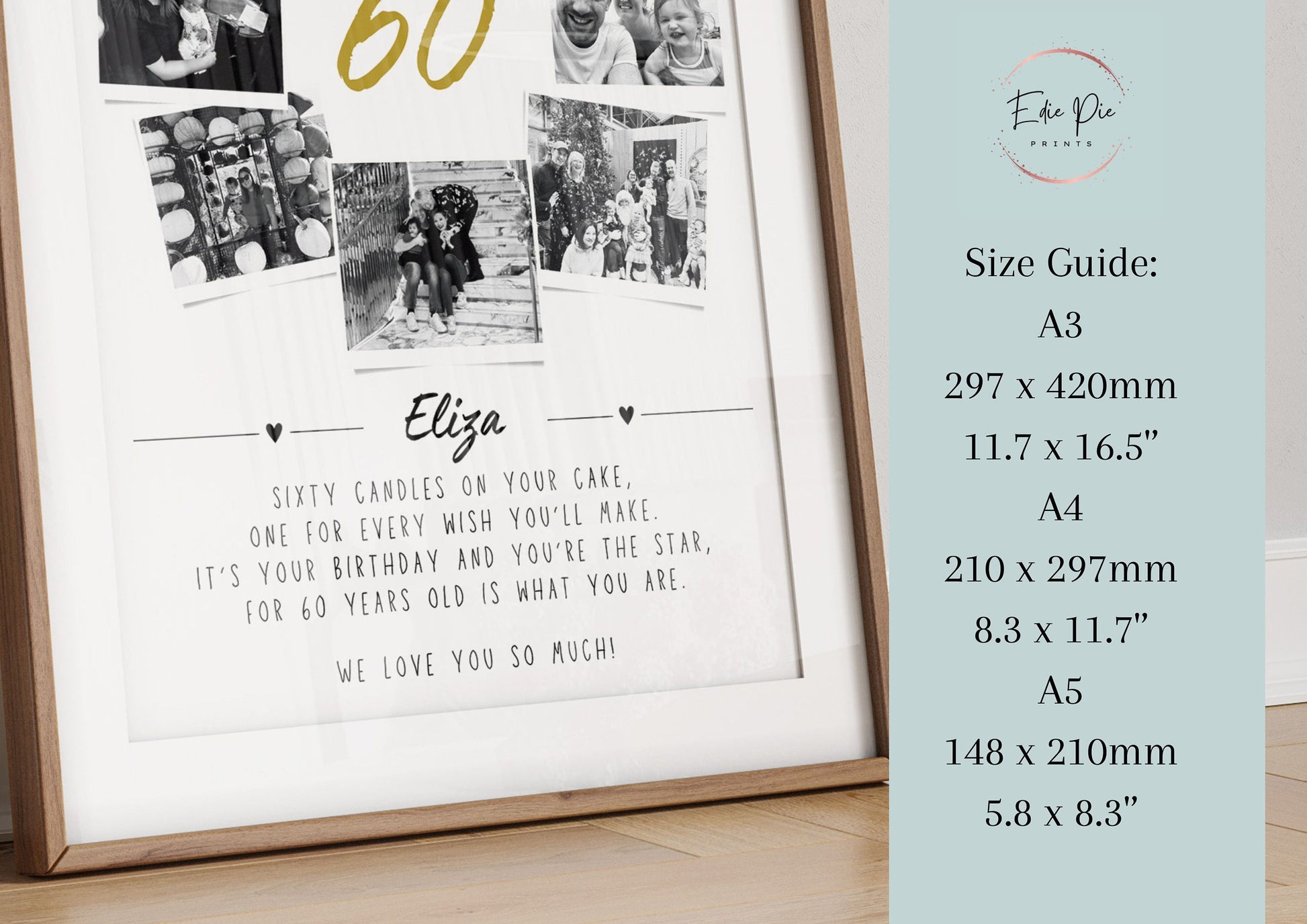 Personalised 60th Birthday Photo Collage | 60th Birthday Gift | Sixty Years Wall Art | Polaroid Photo Frame | Unique Milestone Birthday