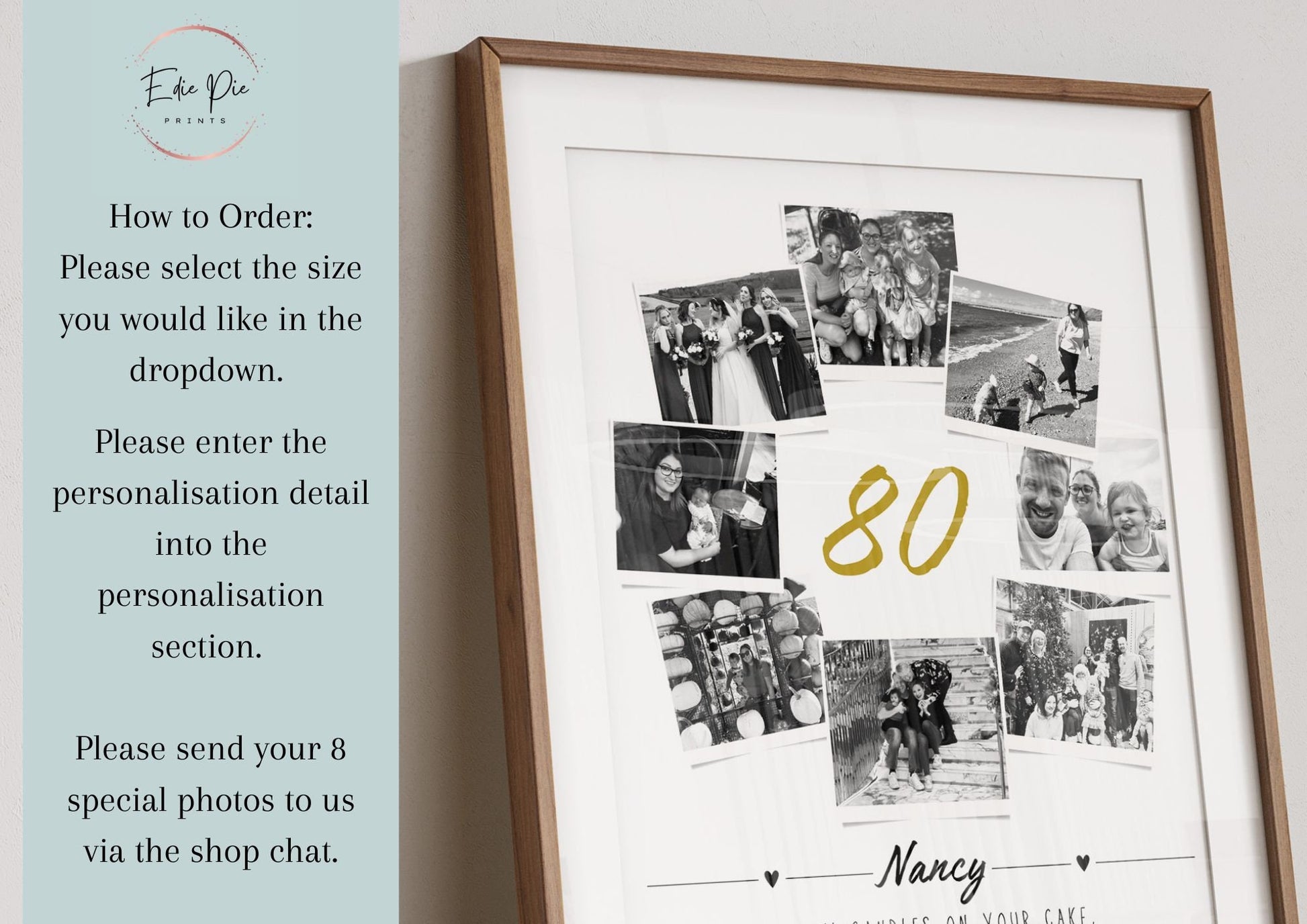 Personalised 80th Birthday Gift, Photo Collage, 80th Celebration, Milestone Birthday Art, Polaroid Photo Decor, Unique Gift Mum Sister Dad