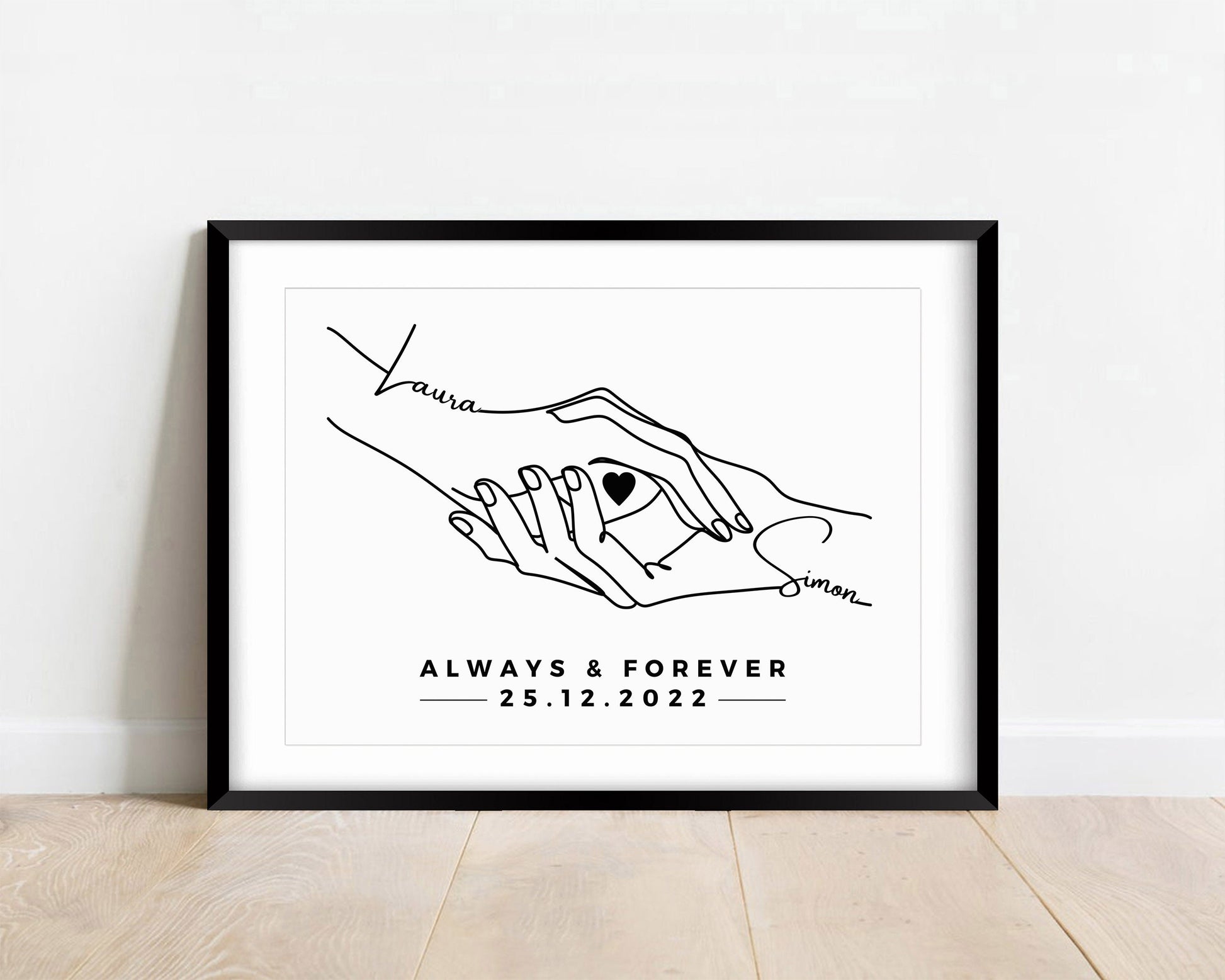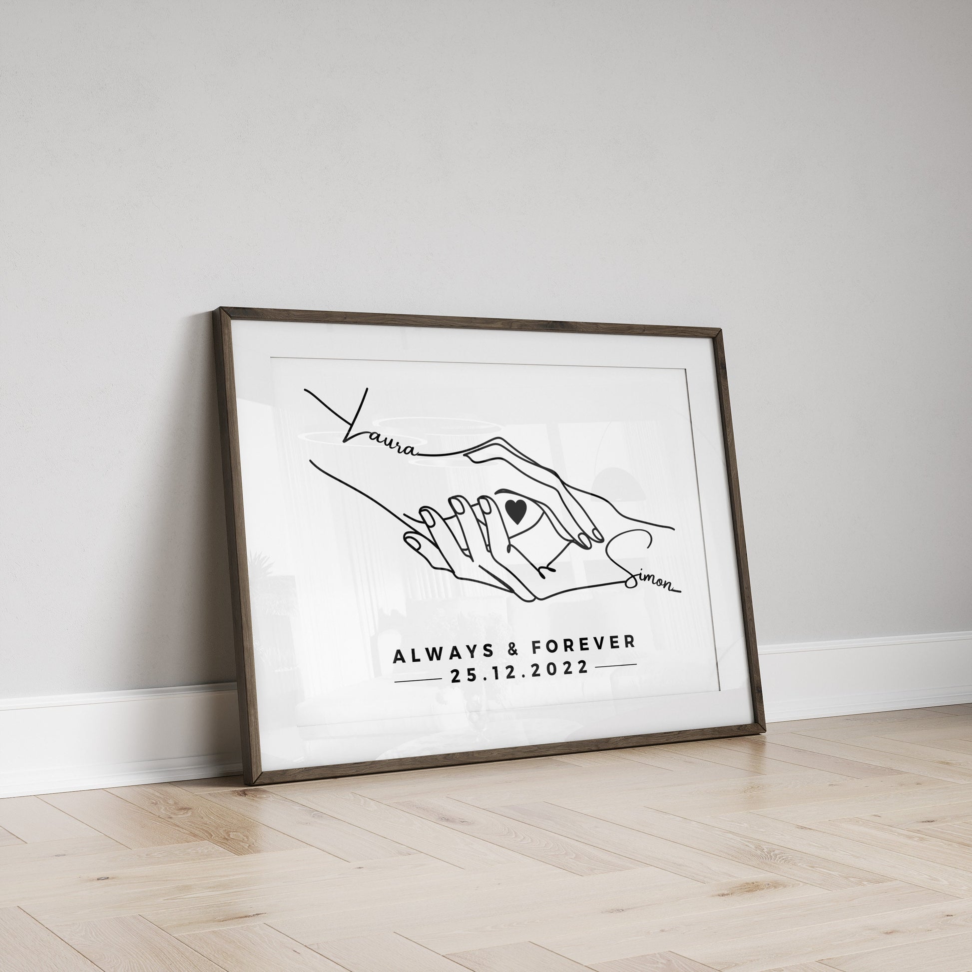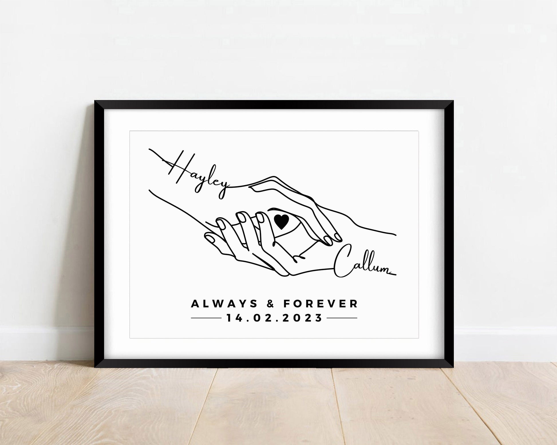 Personalised Anniversary Line Art Print,!Couple Names & Date