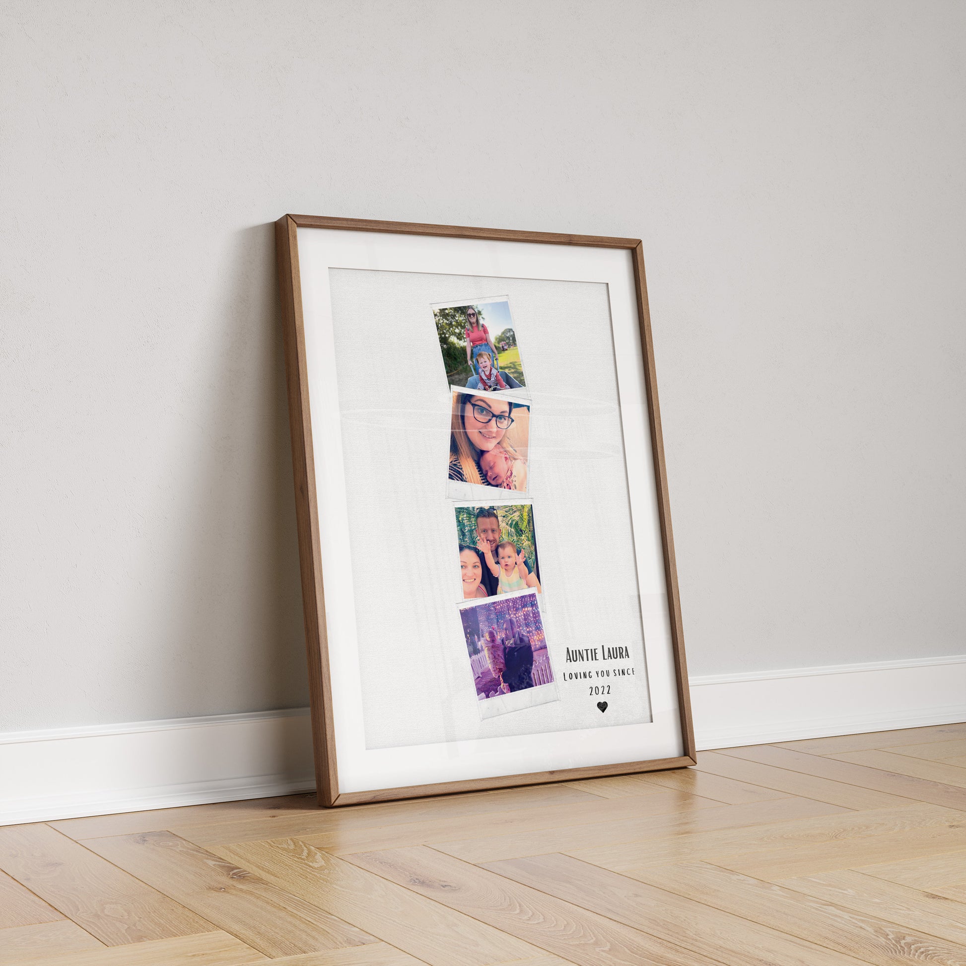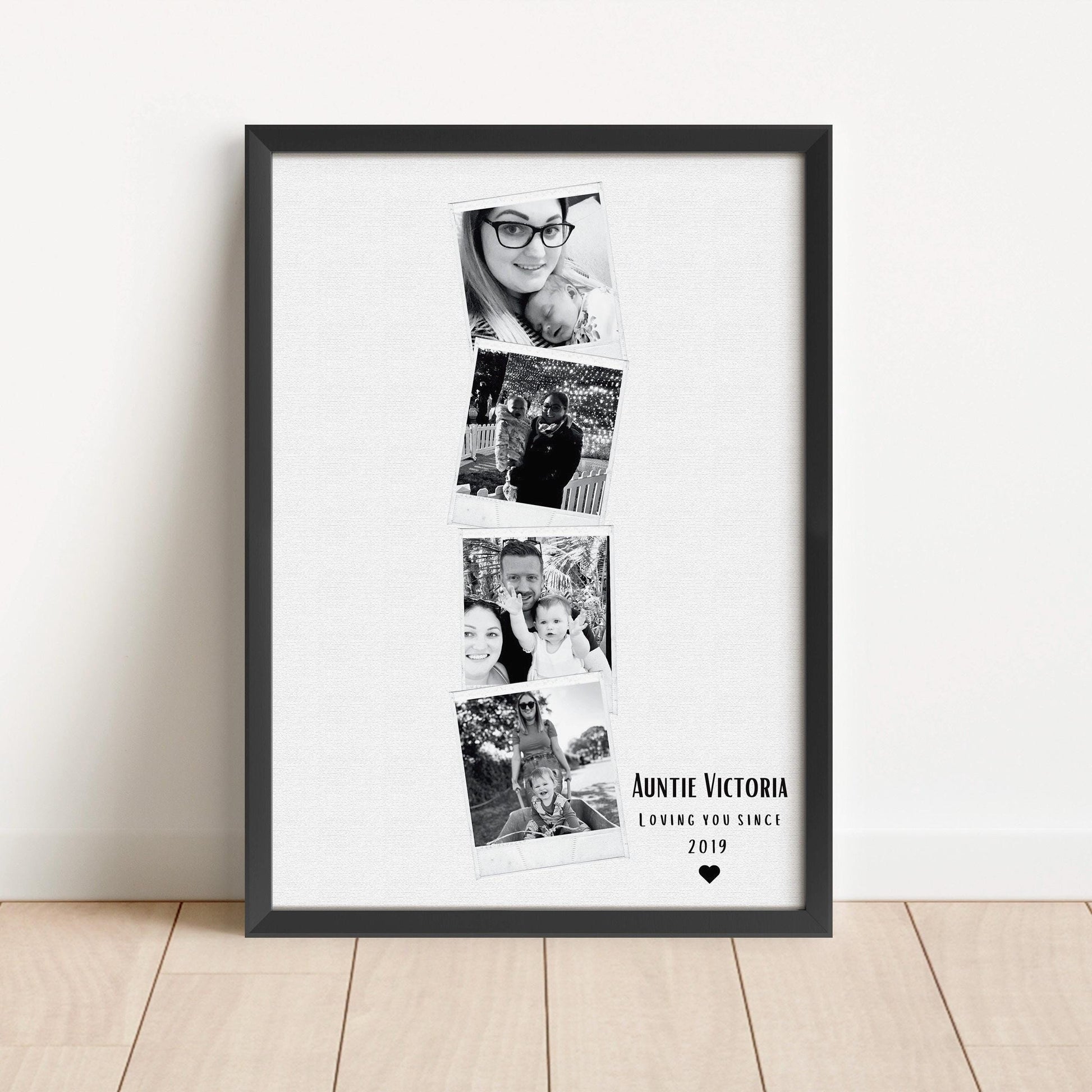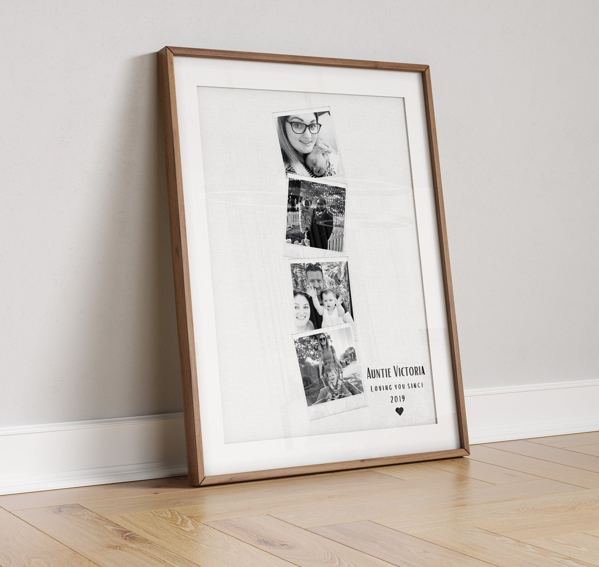 Treat an incredible Auntie with this sentimental and beautiful customised photo print. Fully personalised to order with photos that capture the wonderful relationship with the Aunts name, the children/s name and a quote that reads 'Auntie (name) Loving you since (date).'