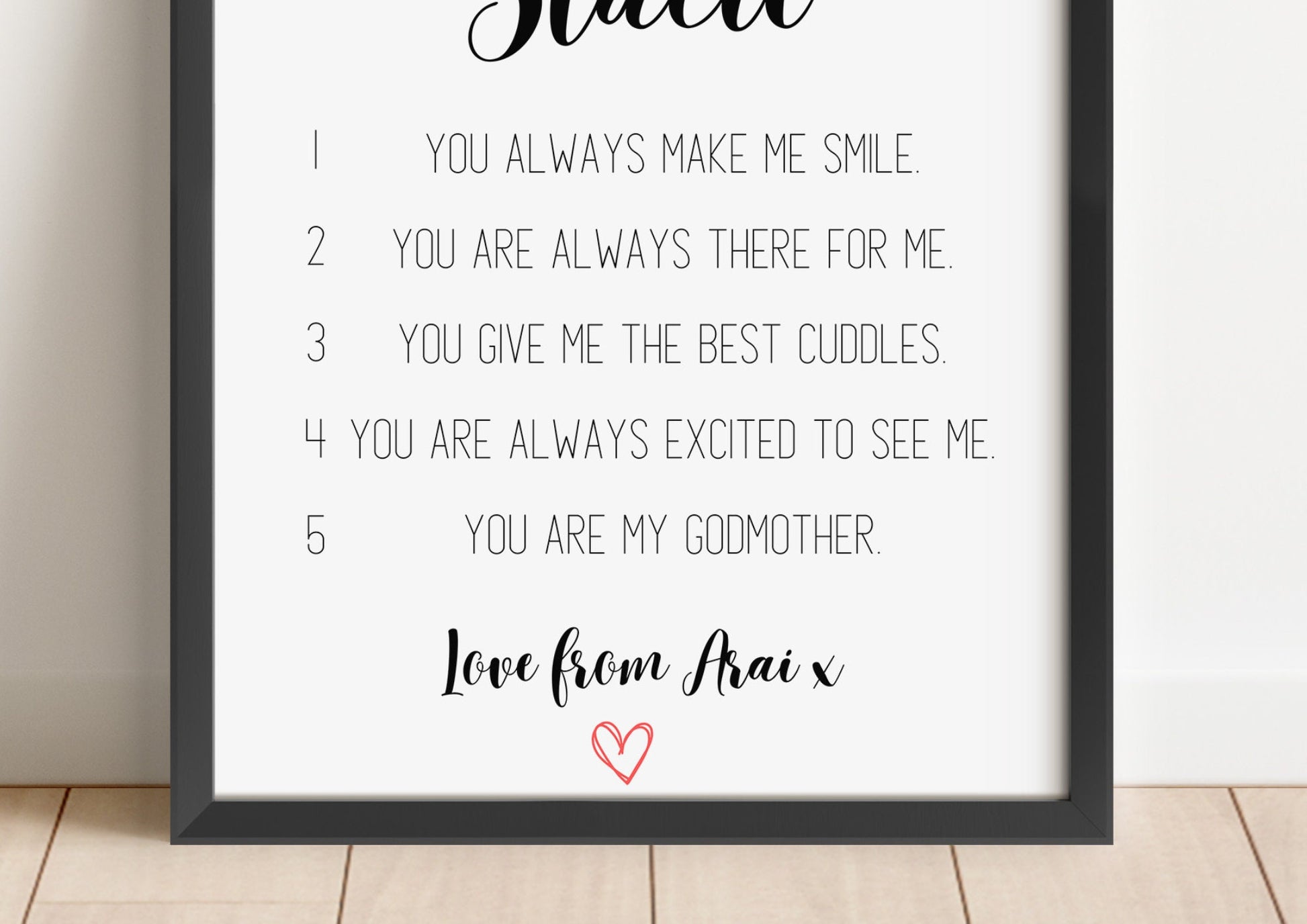 Treat a beautiful Aunt with a lovely sentimental gift this Birthday or Christmas with this unique personalised 'Reasons I love' wall hanging. A way to capture all those beautiful things that makes your child's Aunty truly incredible.