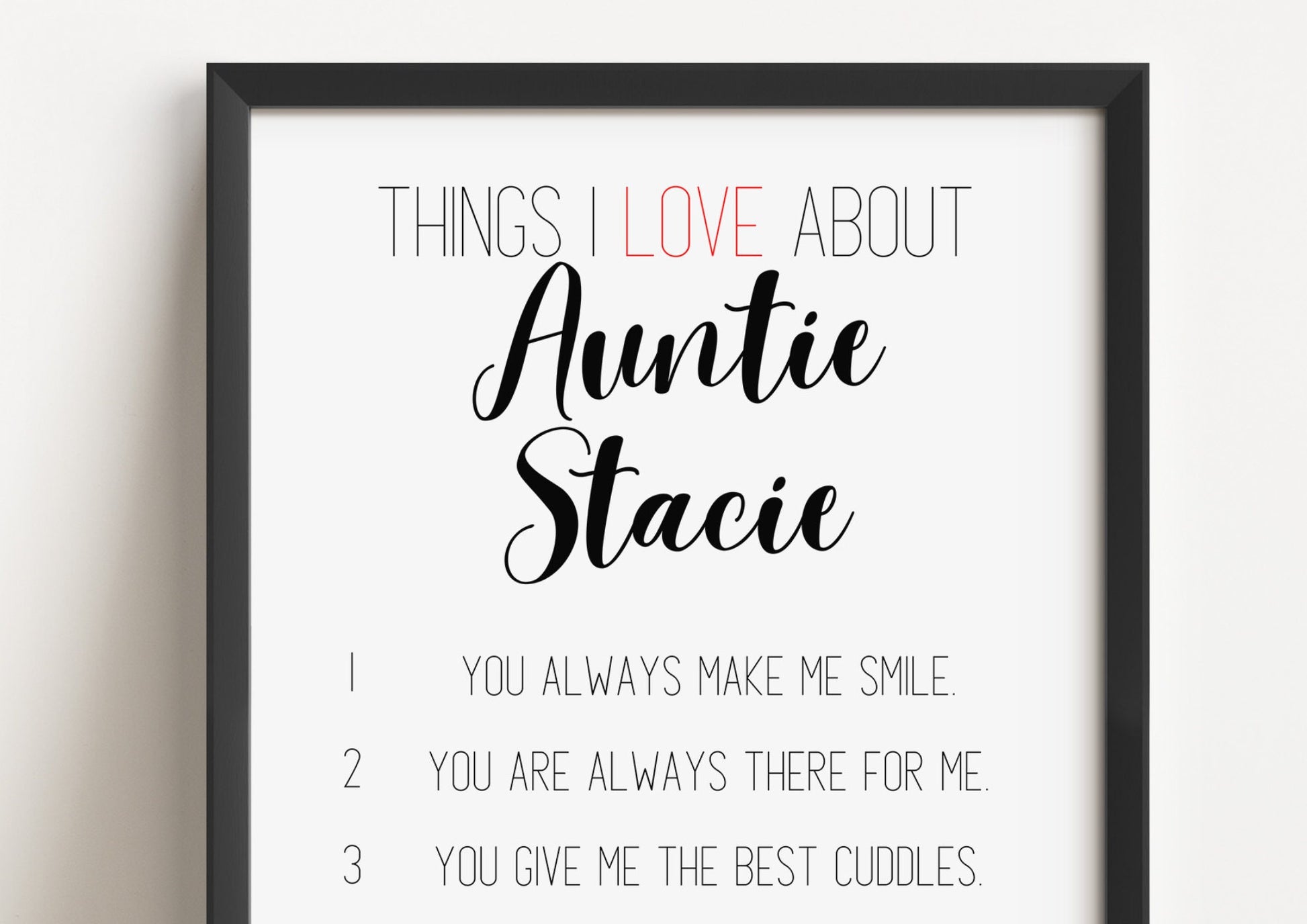 Personalised Auntie Reasons I Love You Print: Sentimental Aunt Gift