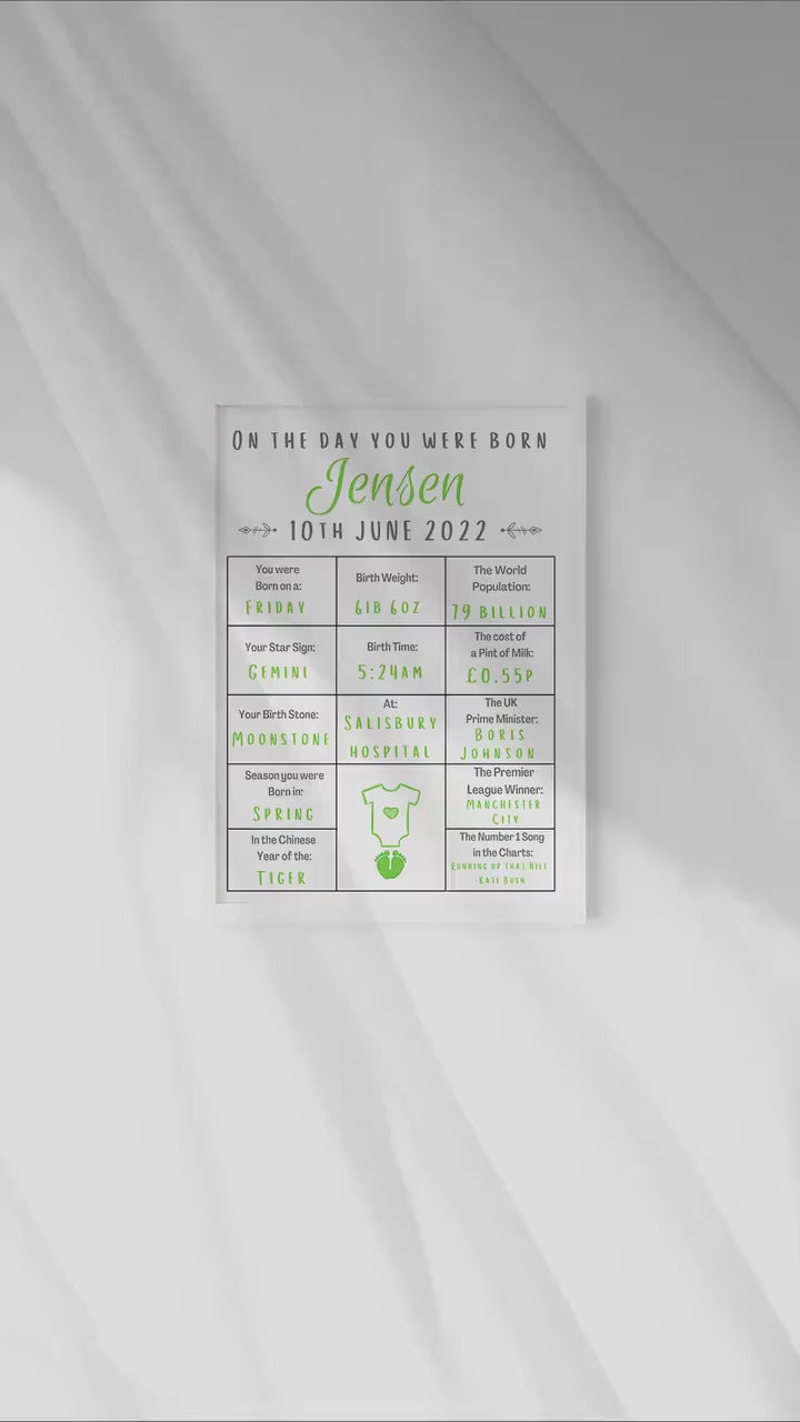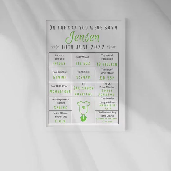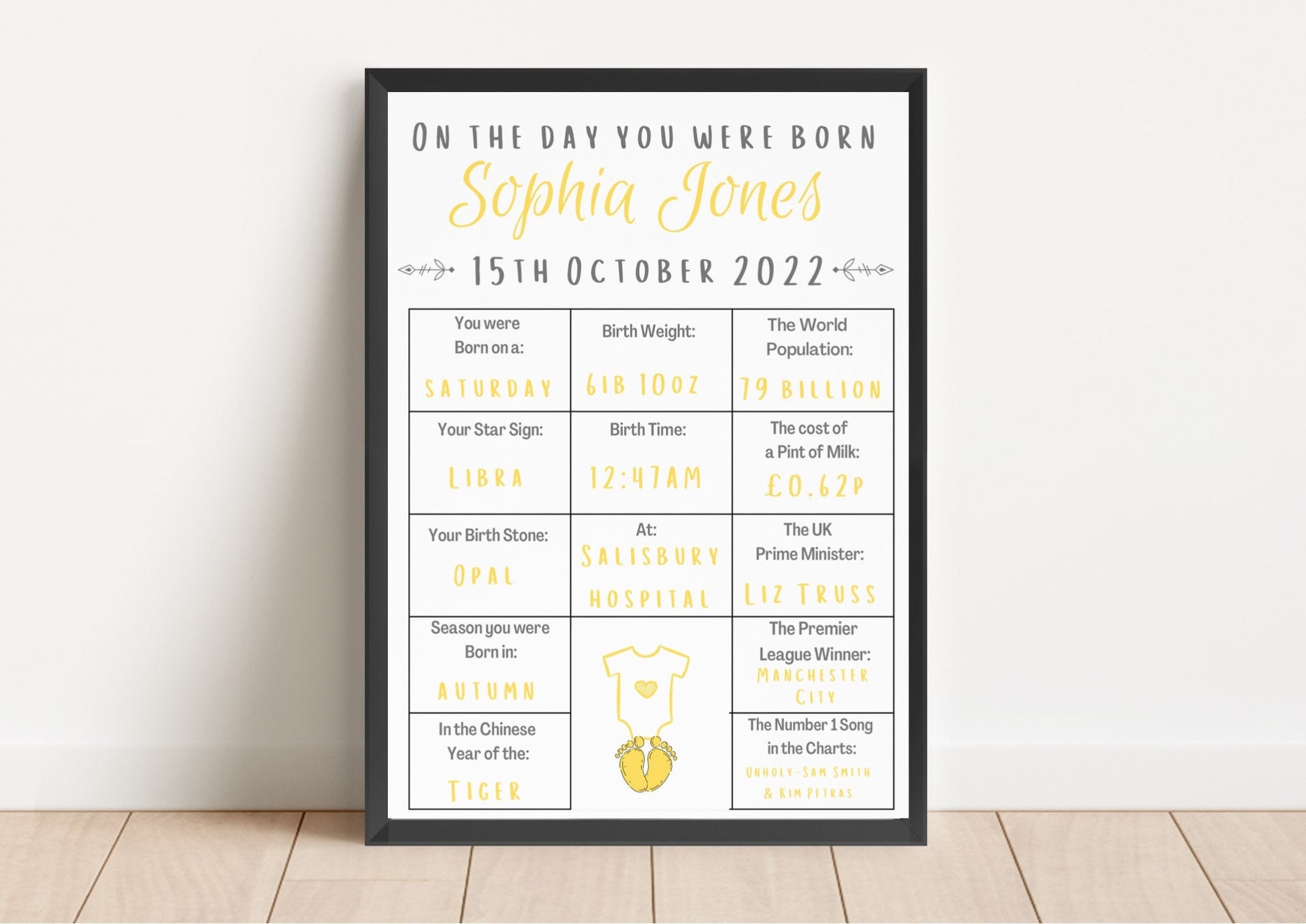 Celebrate a precious new arrival with this Personalised "On The Day You Were Born" Baby Print, a beautiful keepsake to mark a baby's birth with custom details that capture the moment forever.