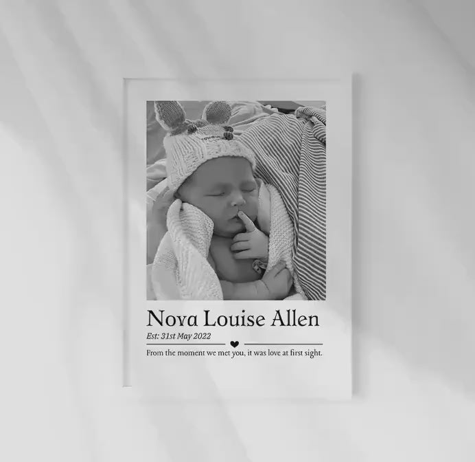 Personalised Baby Photo Print: Newborn Keepsake Nursery Decor