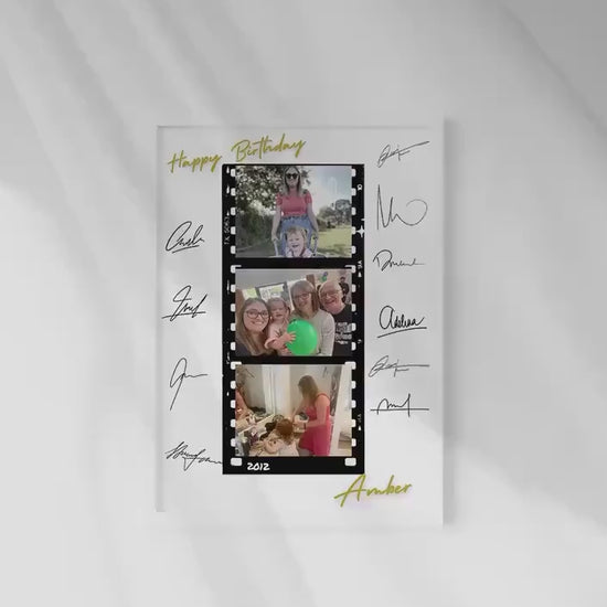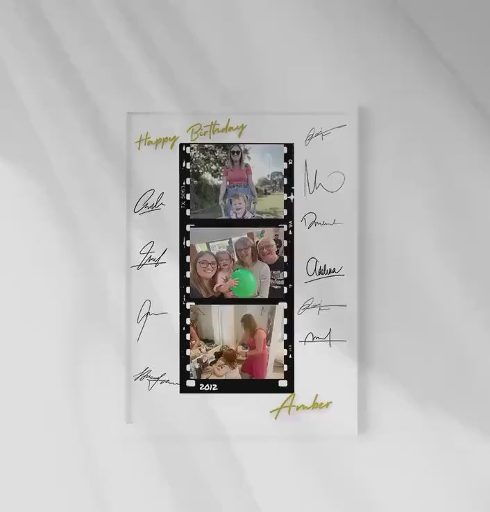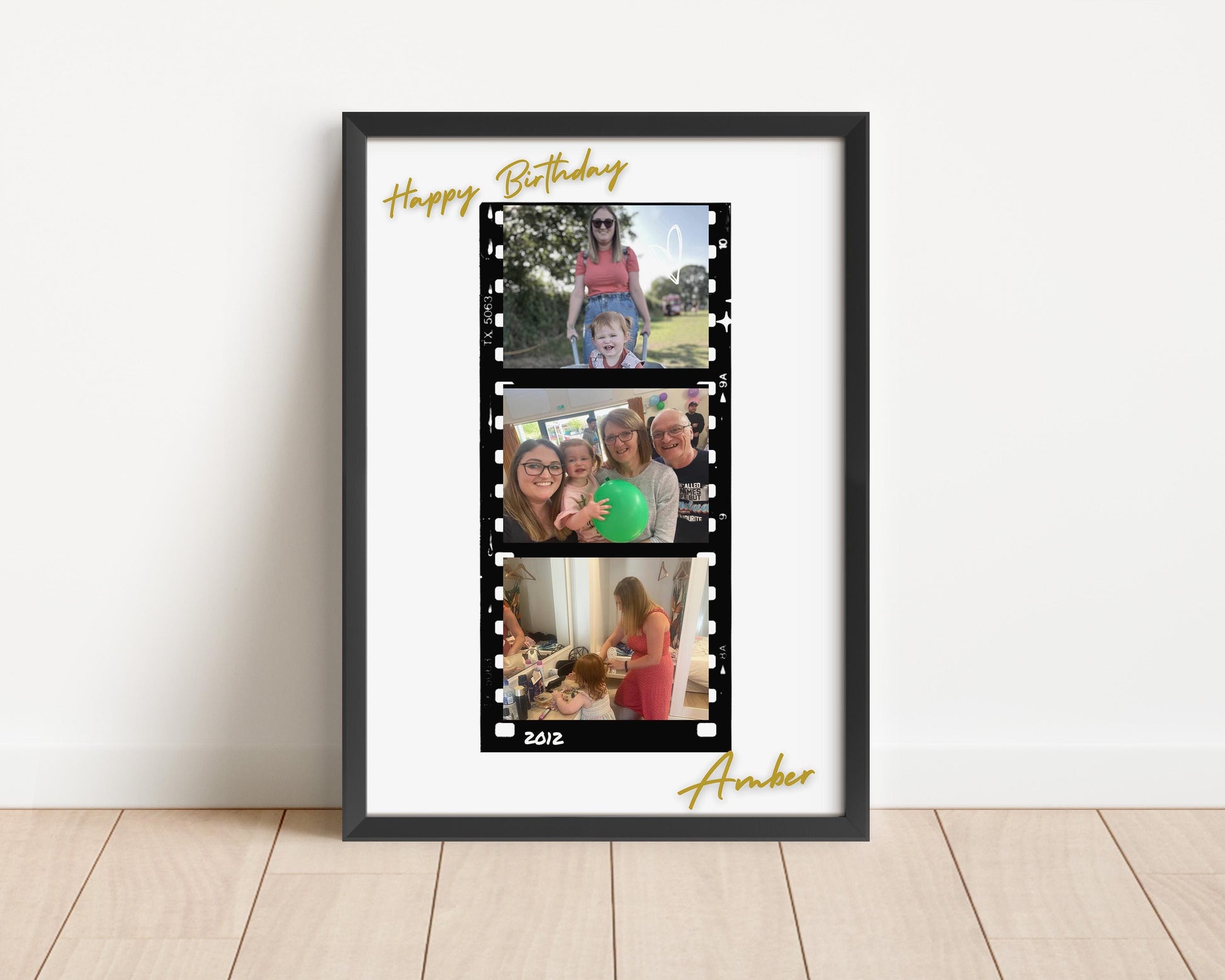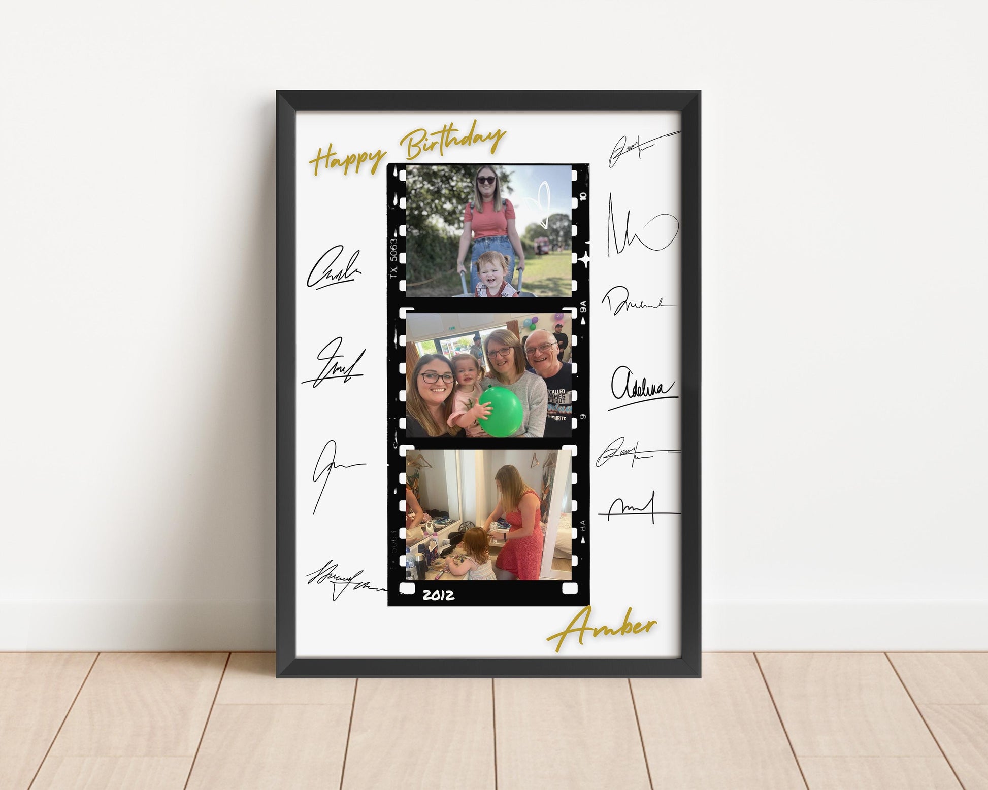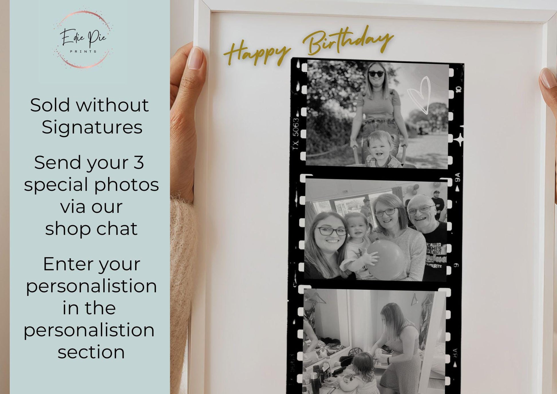 Introducing our Customisable Happy Birthday Photo Print - A Unique Gift to Celebrate their Special Day where your group can all add your own special message! Sold with ample free space around the polaroid design, this is a stunning fully customisable piece. Celebrate someone's special day with a custom, one-of-a-kind birthday photo print! This beautiful print features 3 of your favorite photos in black and white or colour, with their name at the bottom, a date in the polaroid and happy birthday at the top. The wording is totally changeable so please specify any specifics in the personalistion section.