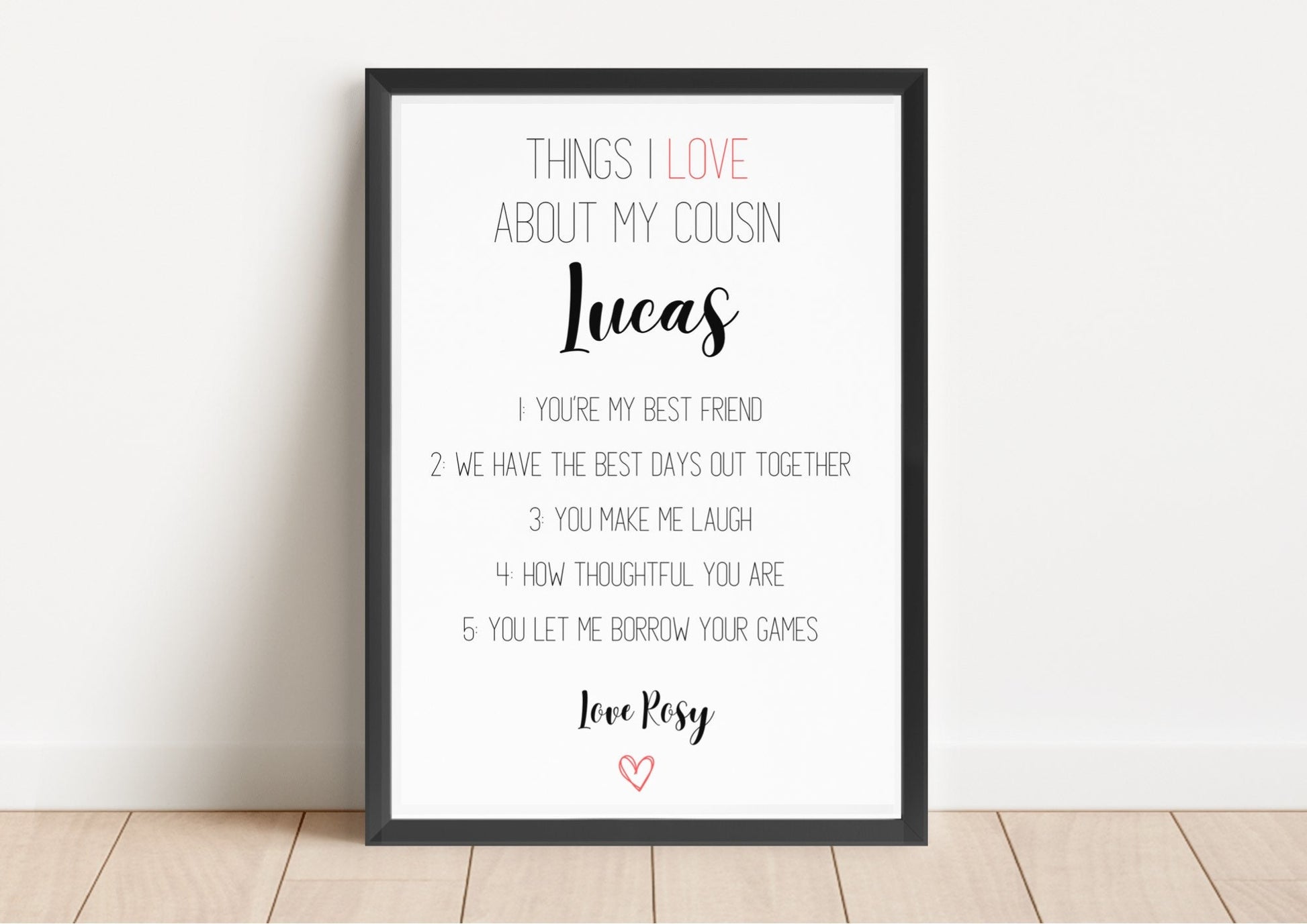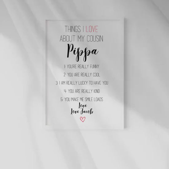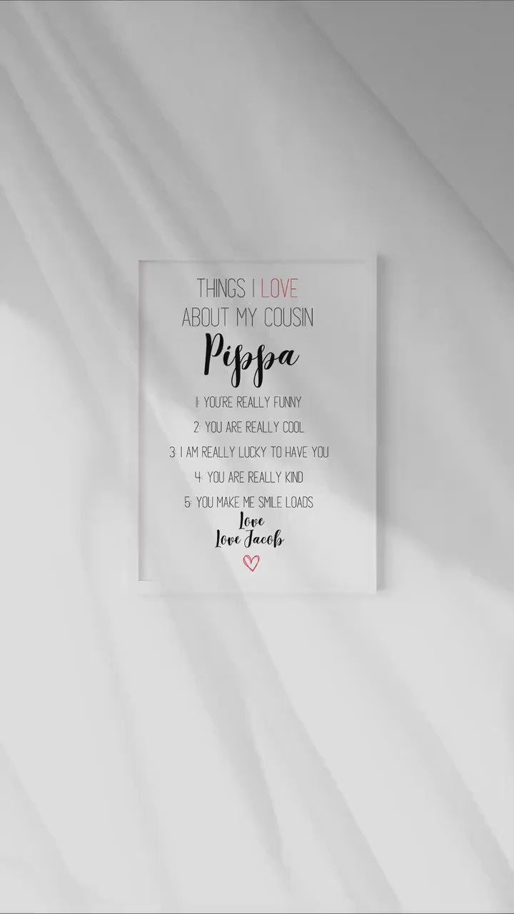 Personalised Cousin Gift: Reasons I Love You Print (A4, A5)