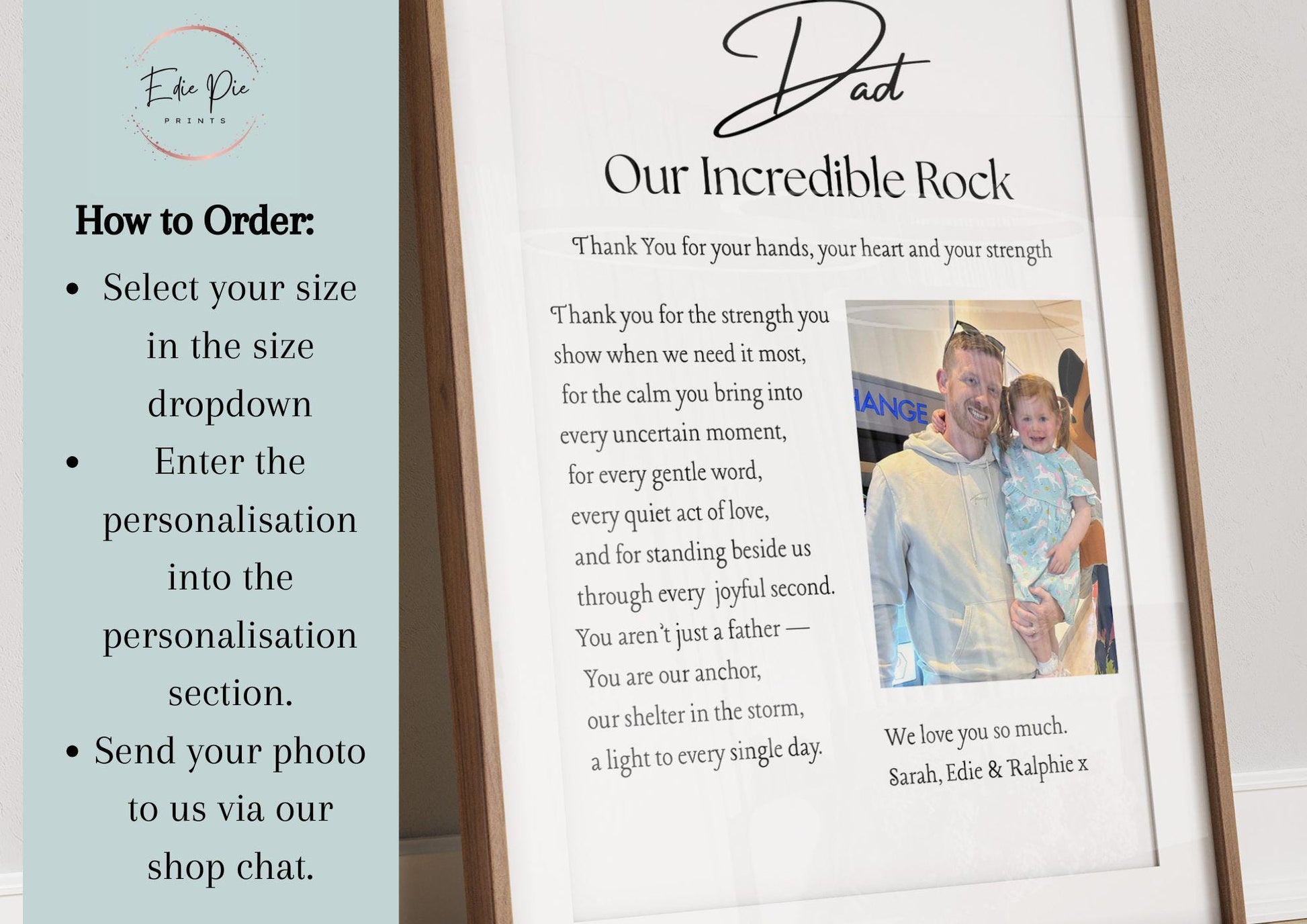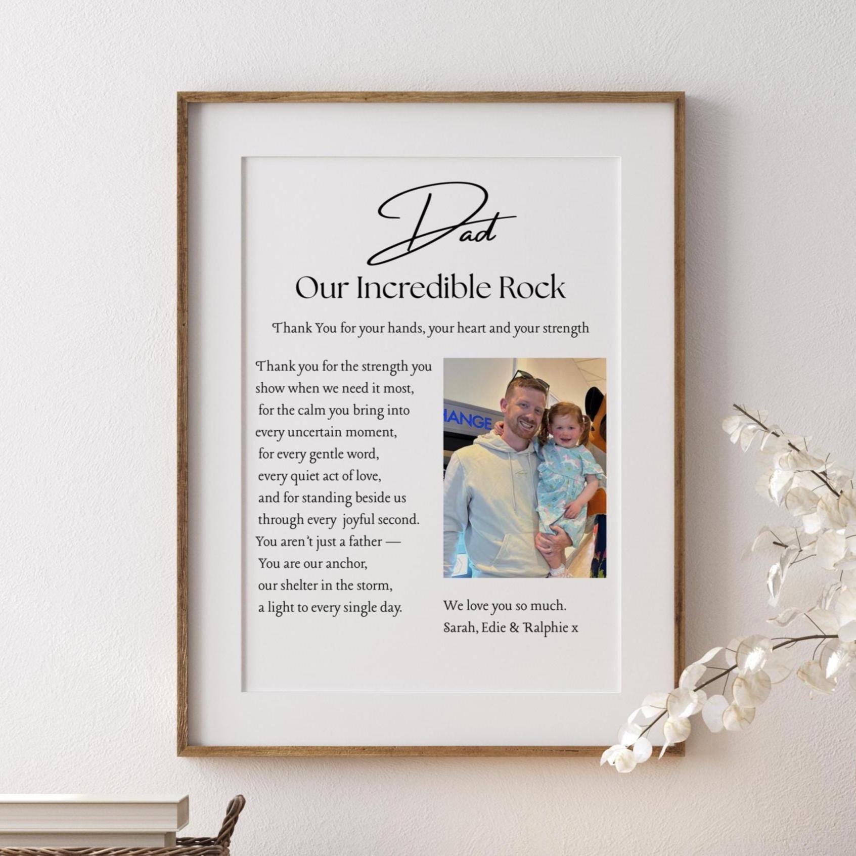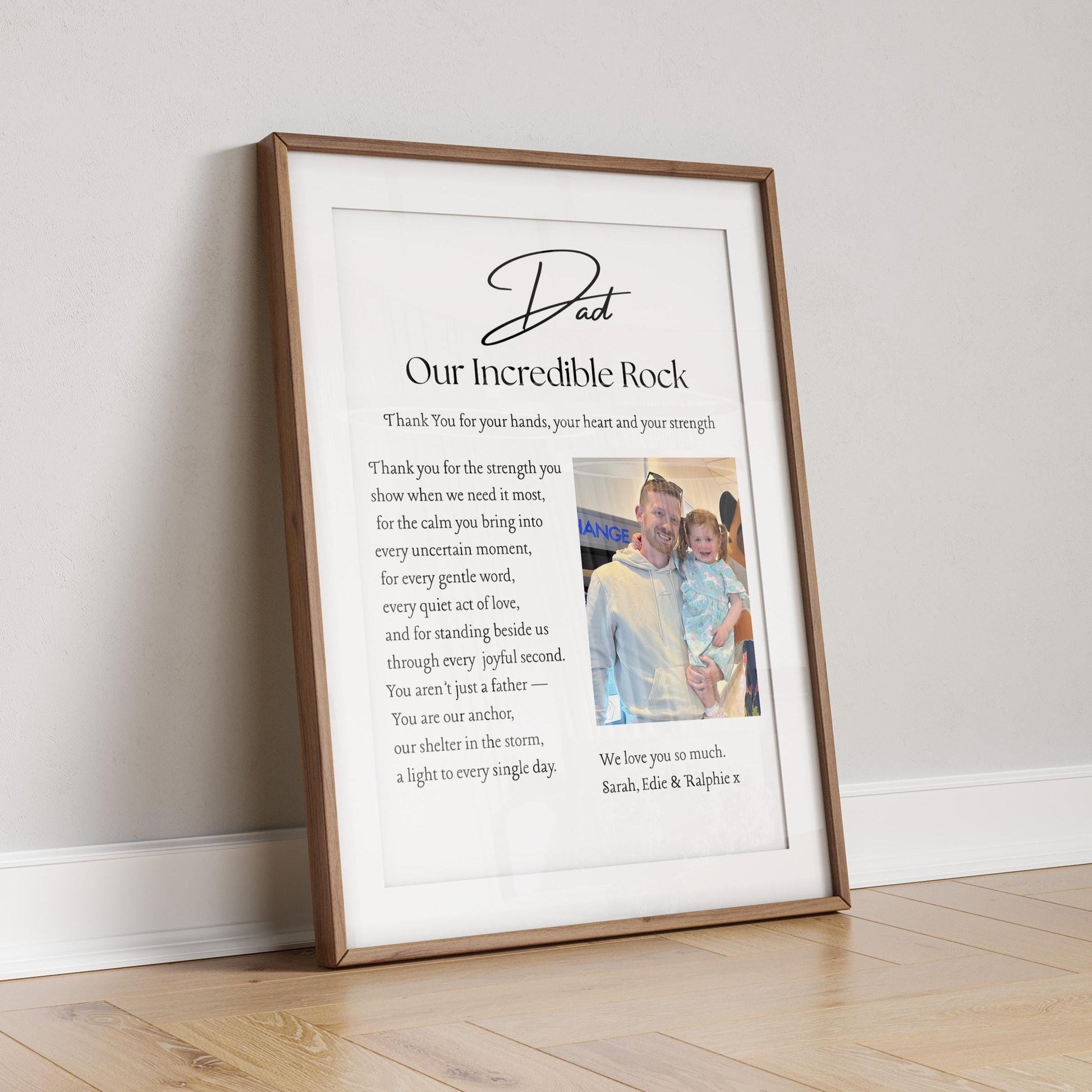 There's no one like Dad-and he deserves a gift that says it all. This personalised photo frame combines your favorite memory with a heartfelt poem to show him just how much he means to you. Whether it's a Father's Day gift from the kids, a birthday surprise, or a special "just because" moment, this custom print is sure to bring a smile (and maybe a happy tear or two).