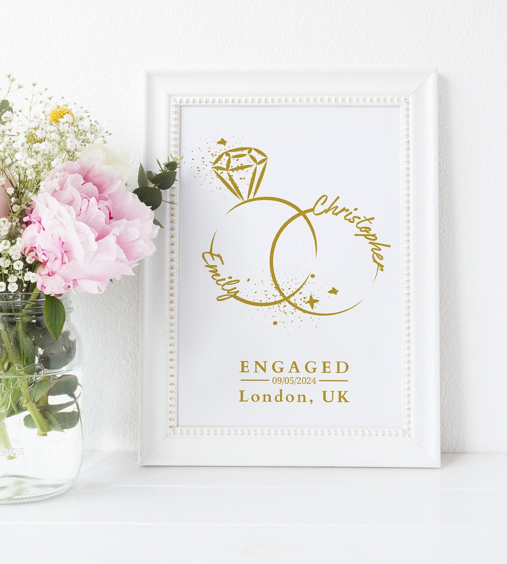 Personalised Engagement Print: Minimalist Rings Line Art, Custom Couple Gift