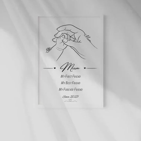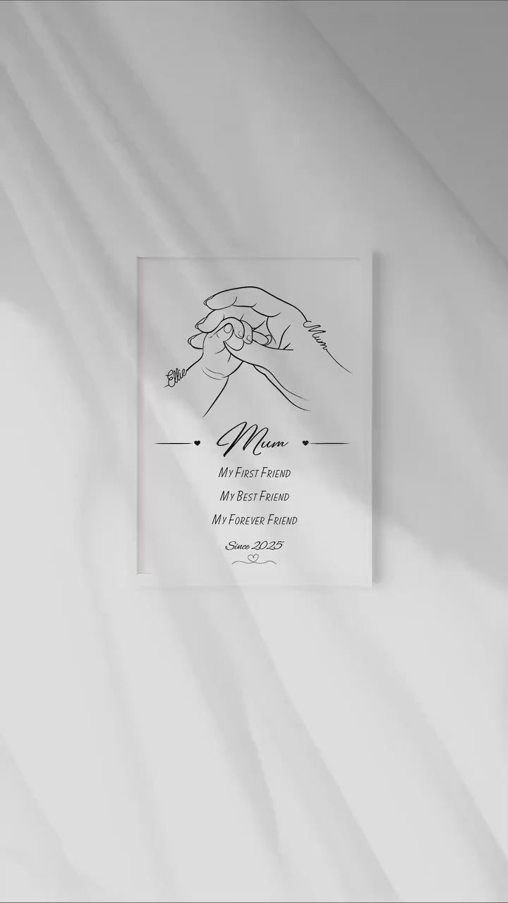 Celebrate the special bond between mother and baby with this elegant Mother & Baby Hand-Drawn Print. Featuring delicate line art of a parent's hand holding a baby's, personalised with names (e.g. "Harry & Mummy") and "Since 2024". Ideal as a heartfelt Mother's Day gift, newborn keepsake or nursery wall decor.