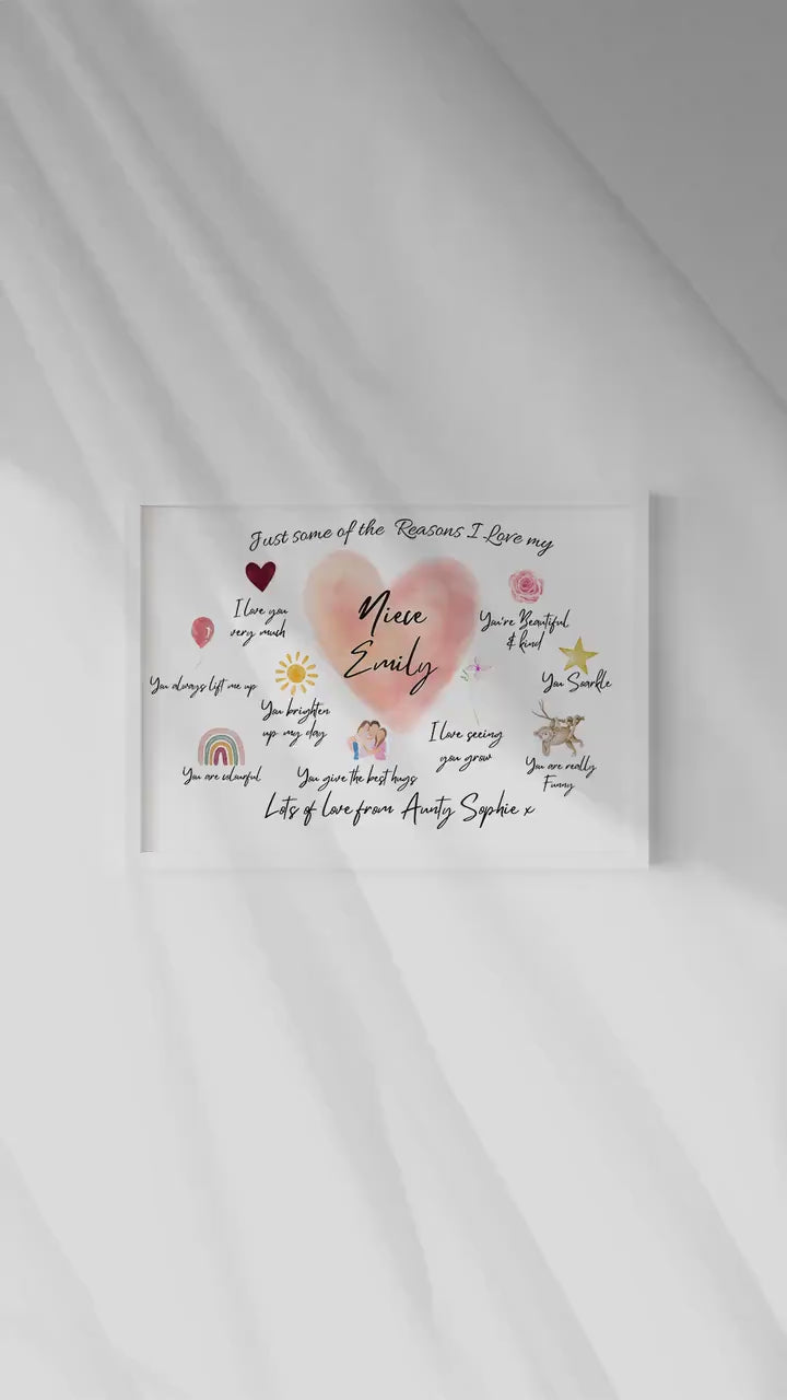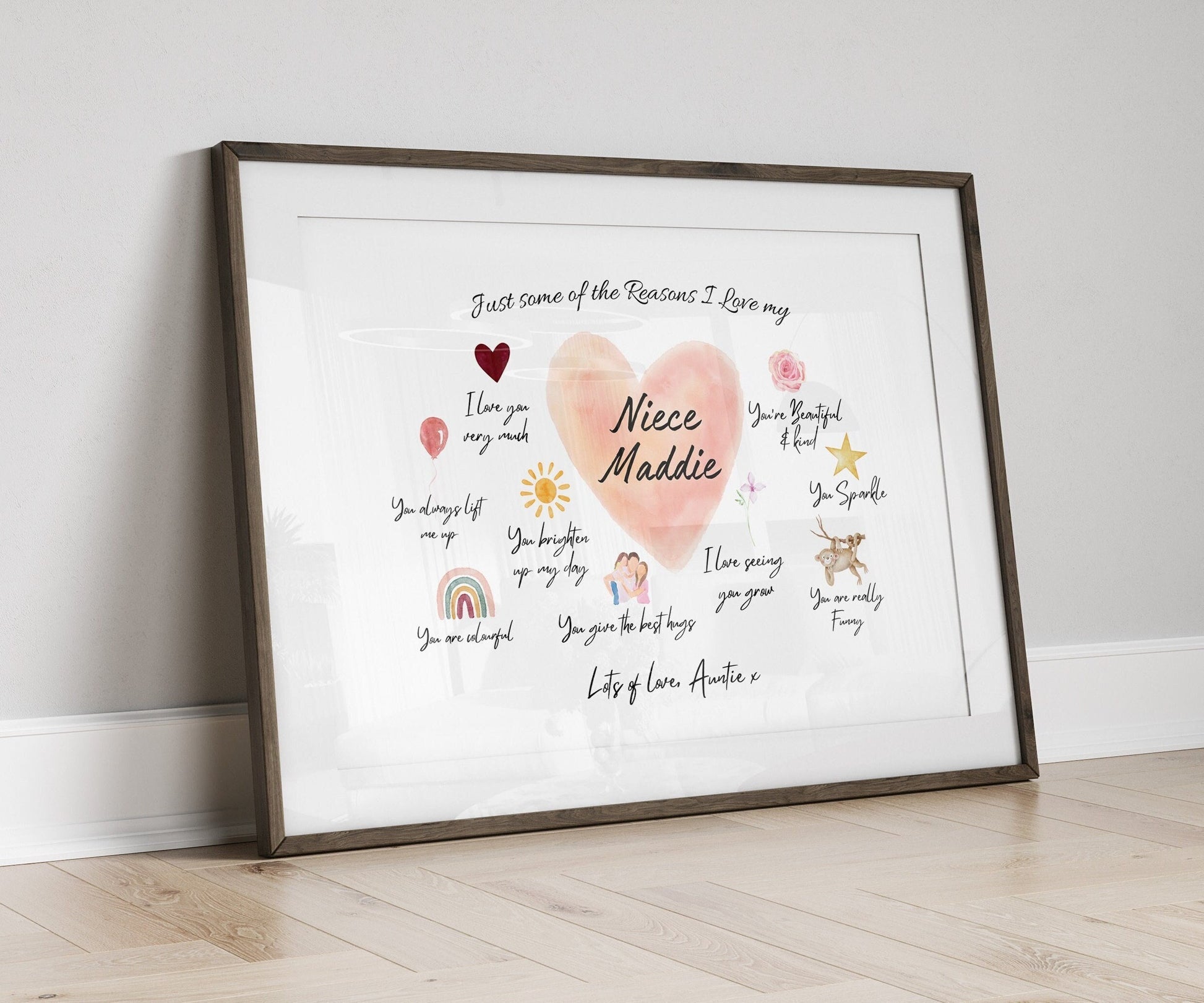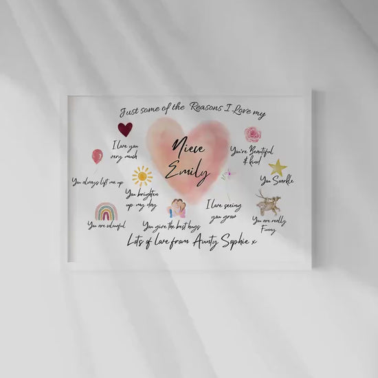 Personalised Niece Reasons I Love You Print: Sentimental Niece Gift
