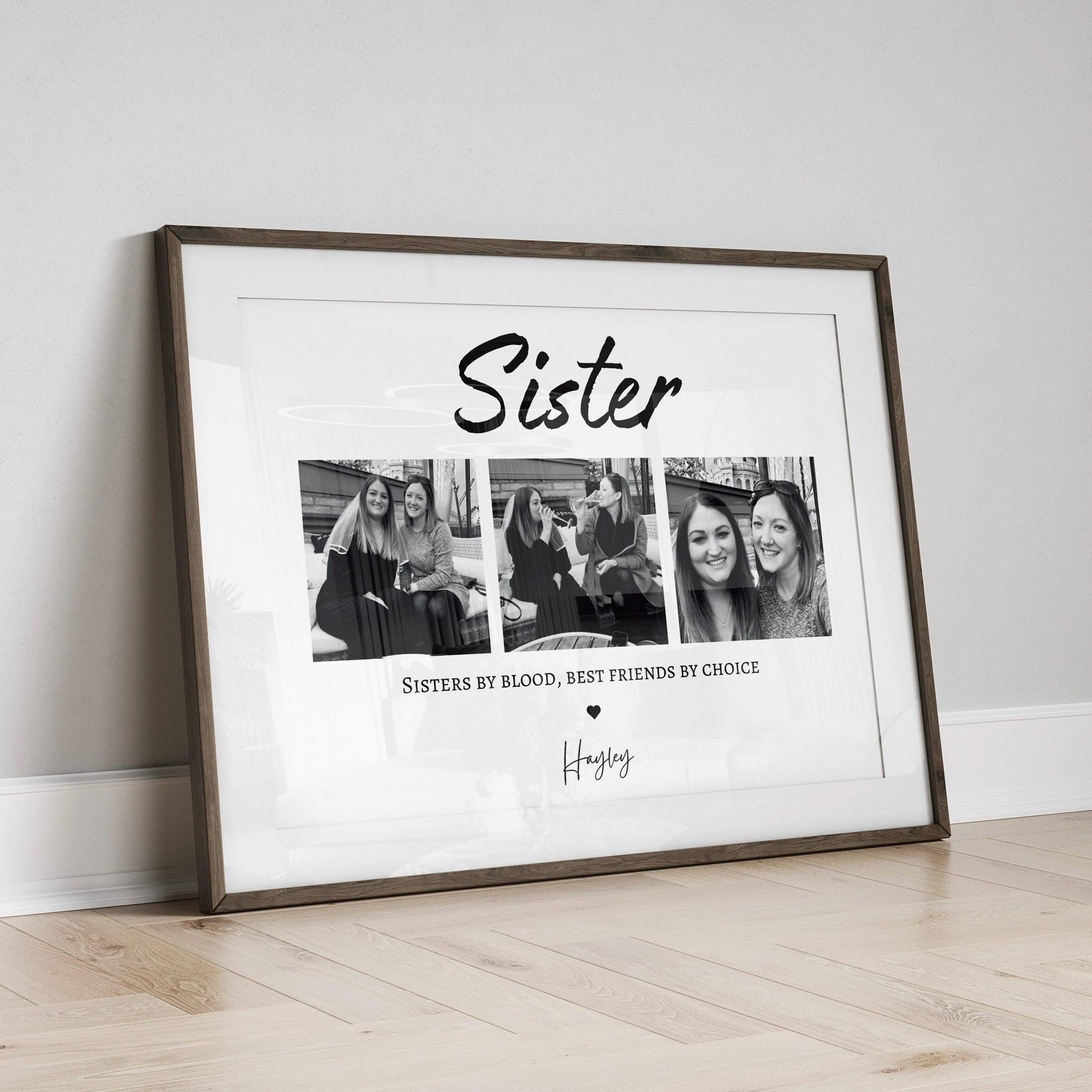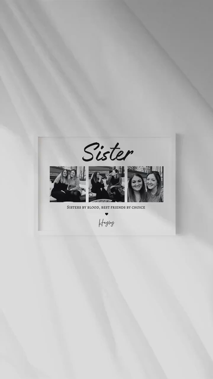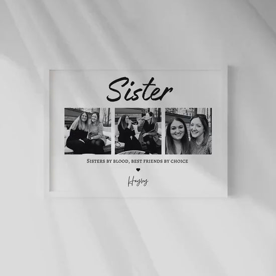 Treat an incredible Sister with this sentimental and beautiful customised photo print. Fully personalised to order with photos that capture the wonderful relationship you have with you sister. With a quote that reads 'Sisters by Blood, Best Friends by Choice.'