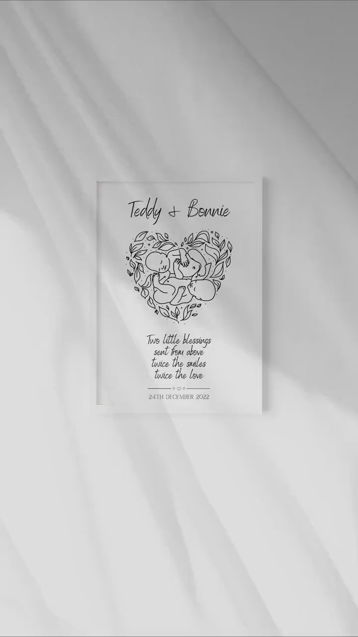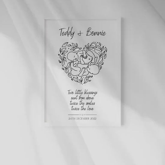Personalised Twins Print, Gift for New Family, Twin Babies, Minimalist Line Art, Baby Shower, Family Names, Date of Birth, New Mummy & Daddy