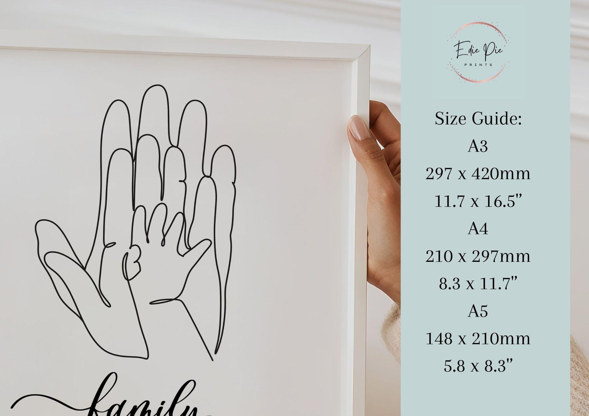 We are a home-based small printing business in Salisbury, UK. Our print business was inspired by our beautiful little girl Edie. All prints in our shop are designed by us and are created around home and wedding decor to accompany any style you choose. Our prints are sent frameless to give you the peace of mind that you can decide what style, colour, and design you would like in your living space or wedding.