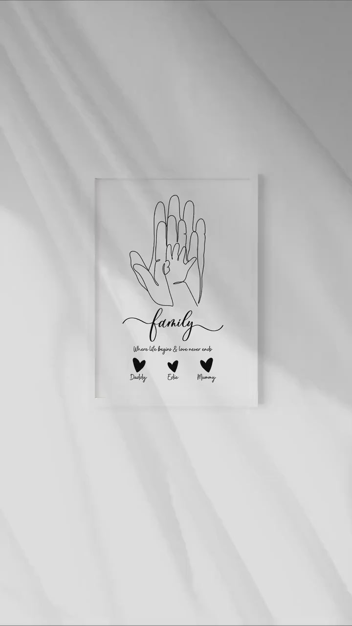 Personalized Family Hand Line Art Print: Keepsake Gift