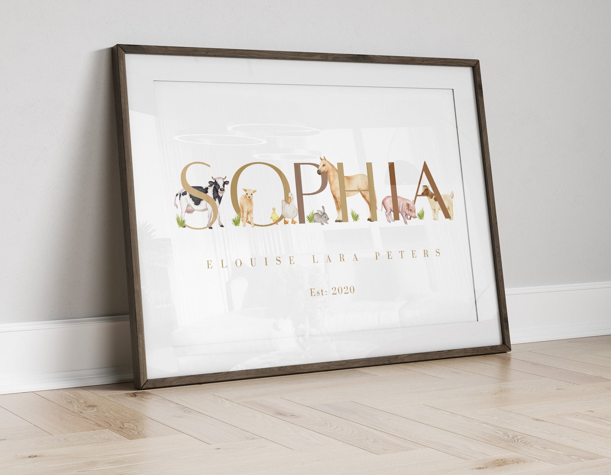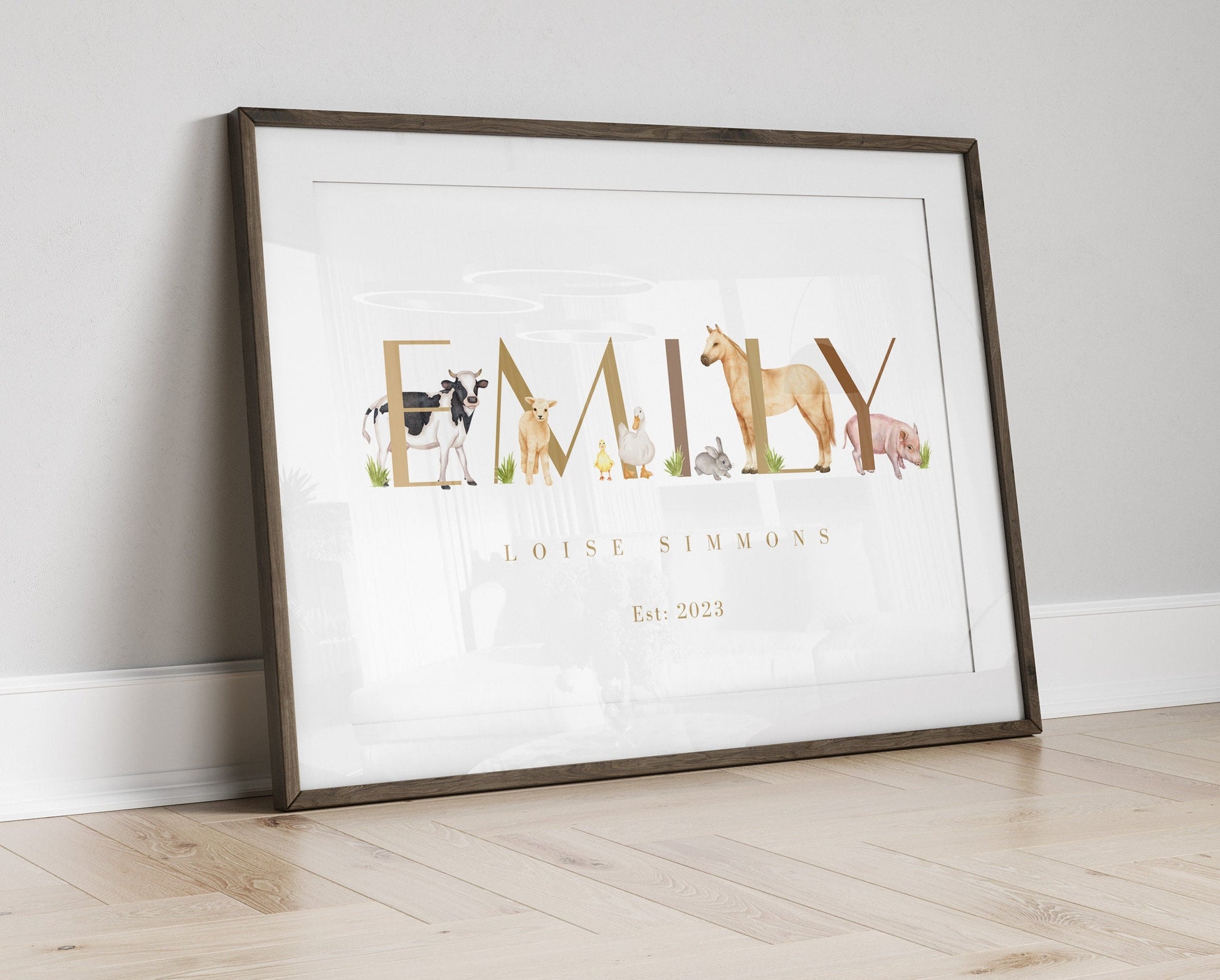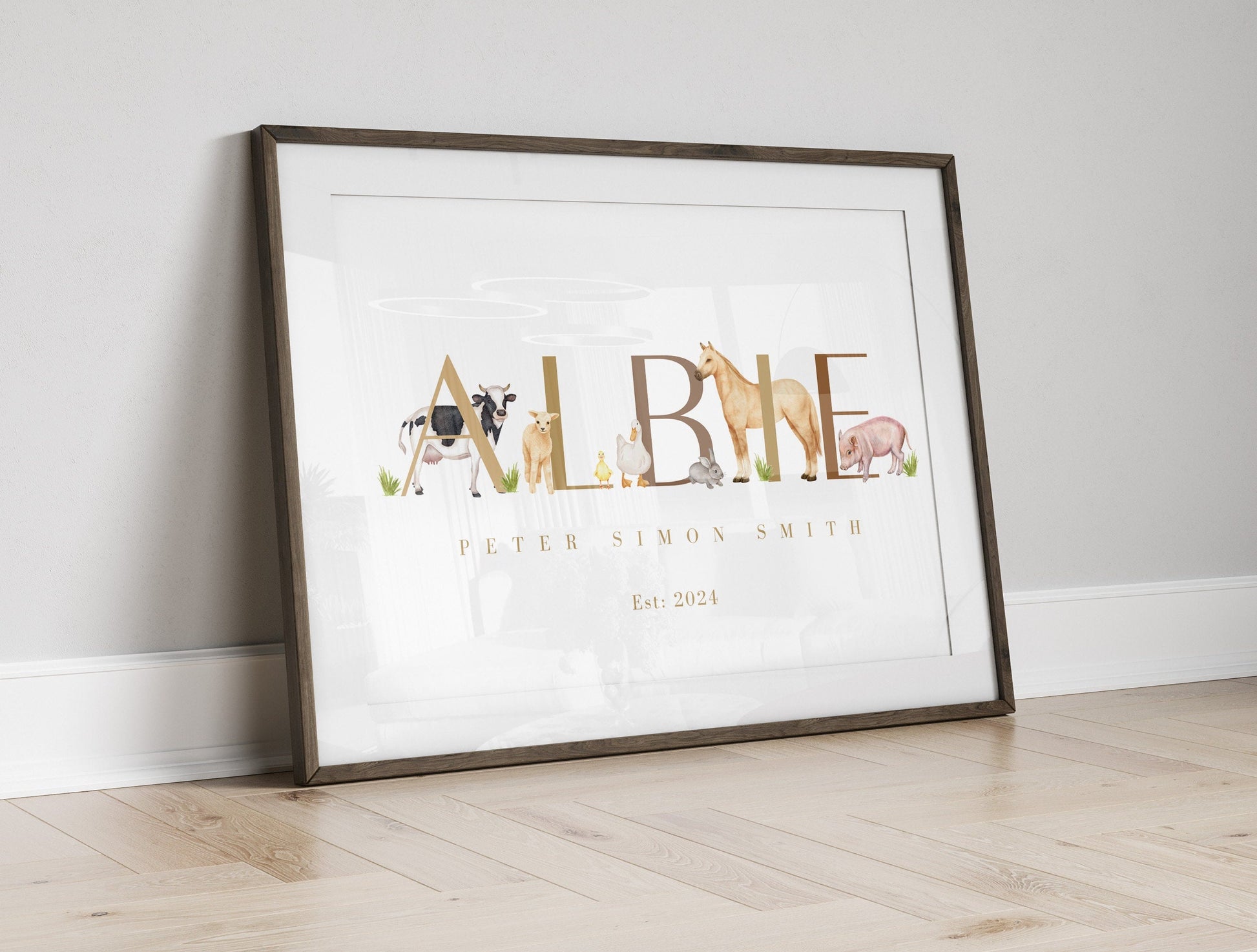 Personalized Farm Animal Nursery Print: Rustic Watercolor Name Gift