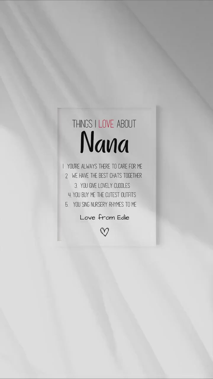 Personalized Nana Print: Things I Love About You, Grandma Gift