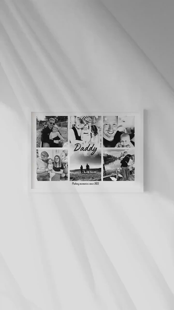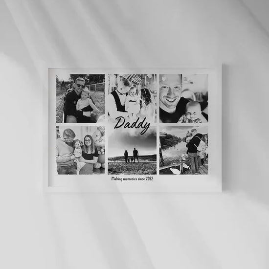 Gift an incredible Dad with this sentimental and beautiful customised photo collage print. Fully personalised to order with photos that capture the wonderful relationship between an amazing Daddy and his son and or Daughter. This stunning poster captures 6 gorgeous photos within with Daddy front and centre and a quote underneath that reads 'making memories since' with the year the child was born.