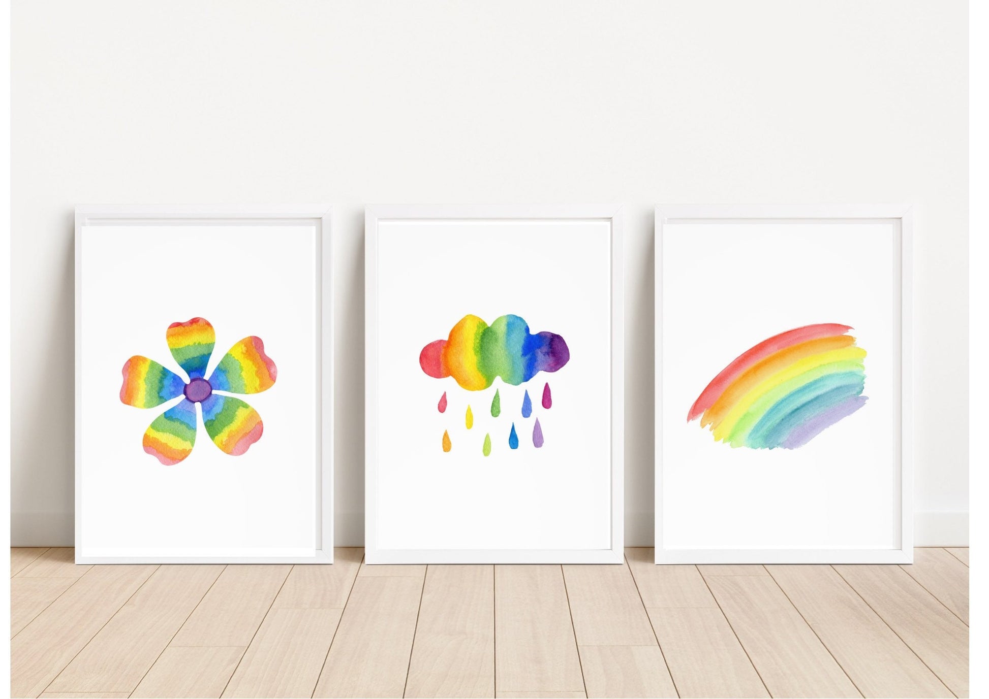 Rainbow Nursery Prints: Pastel Flower, Cloud, Rainbow Wall Art